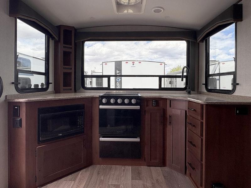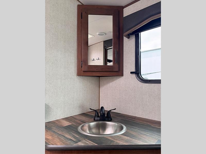 With any Timber Ridge Mountain Series travel trailer by Outdoors RV you will enjoy climate designed four seasons camping thanks to the thermal pane windows and the fully enclosed, heated, and insulated underbelly. The custom built chassis and rugged integrated A-frame are built for strength and durability, along with the rugged 2" bonded aluminum frame walls. Each model includes LG solid surface countertops, granite designed backsplash, vaulted radius ceilings, and a mountain comfort premium mattress for all-around comfort. You will also love the XL panoramic slide out windows and the dual pane living room skylight with a shade to let natural light in!