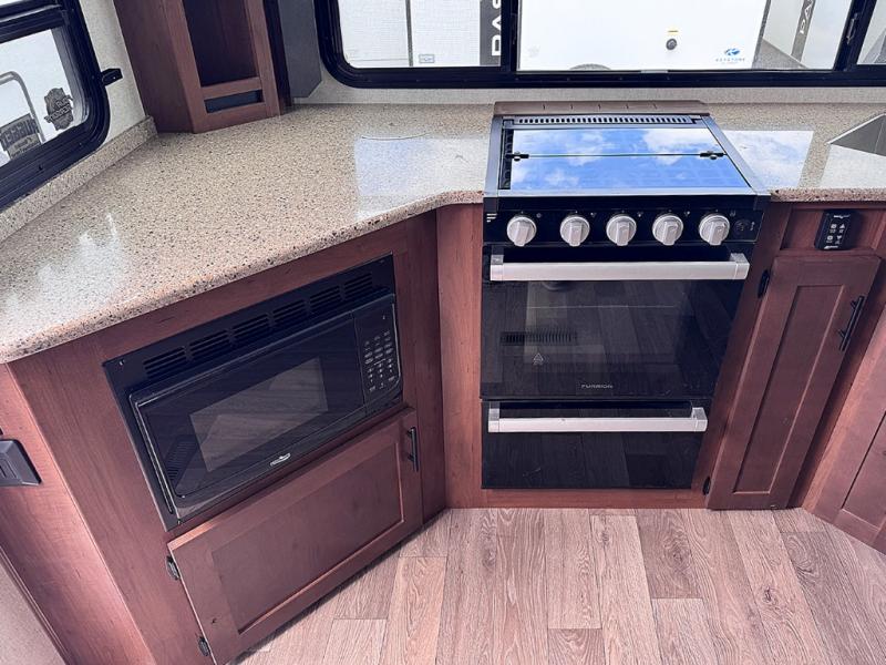 Pack your bags and escape the city life for weekend camping trips in this dual entry travel trailer. When you arrive at the campsite, take a hike to stretch your legs, then come back to prepare lunch on the three burner cooktop. You'll find plenty of counter space in the kitchen, plus a refrigerator for cold drinks and perishables. The dual lounge chairs will have you feeling right at home, or you can choose the optional sofa with built-in recliners, or the optional sleeper sofa if you need more sleeping space. This model includes a walk-through bath that is both spacious and convenient since it leads to to the front master bedroom. You can't beat a queen bed, dual bedroom wardrobes, and your own exterior entry door!