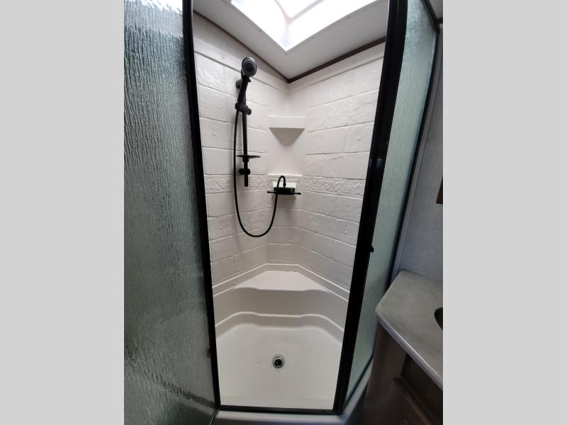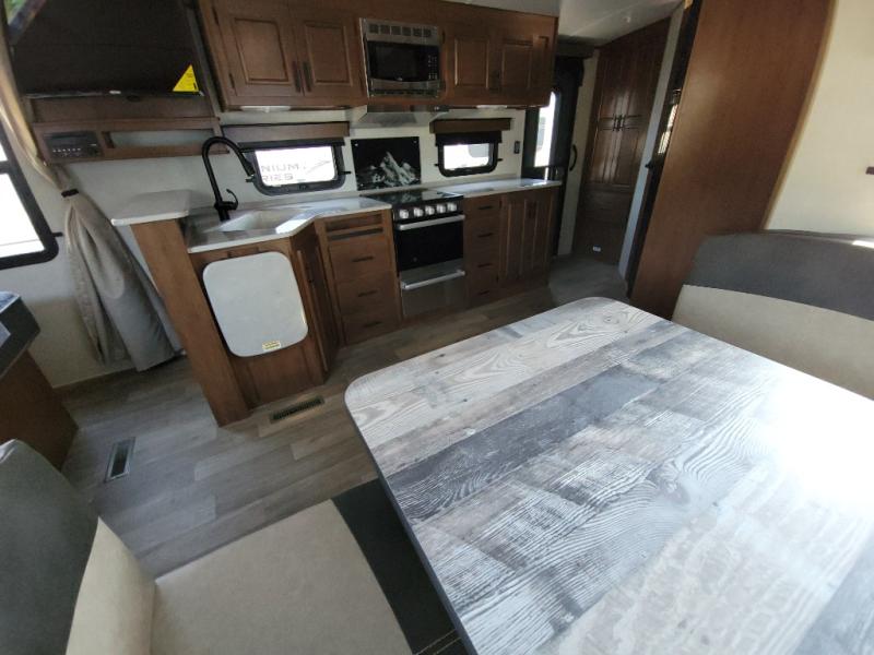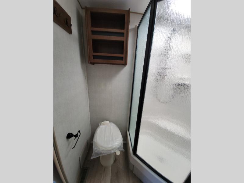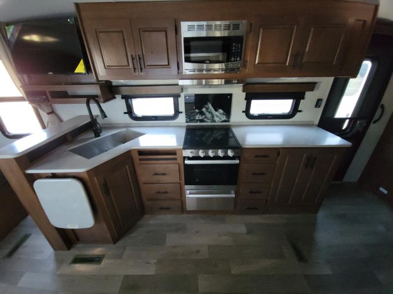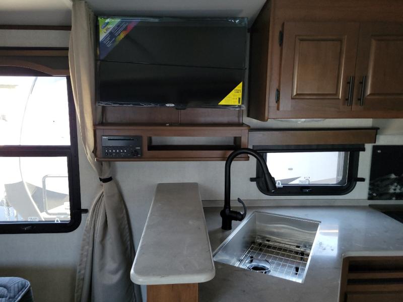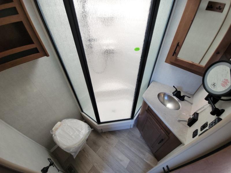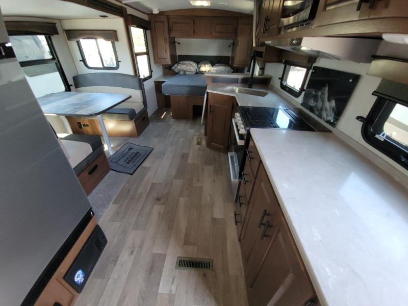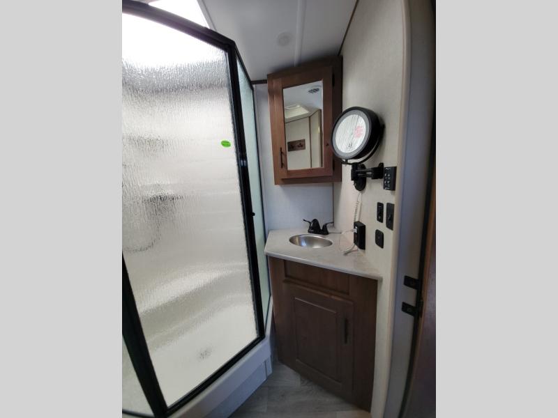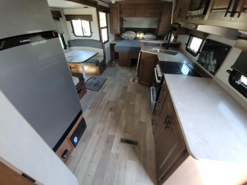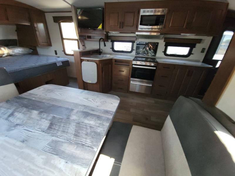 This is the perfect travel trailer for camping trips to the lake or your favorite campground. You will find a full kitchen with plenty of counter space, and a mountain dinette with a skylight to dine under natural lighting. The entryway closet/wardrobe will allow you to store jackets and shoes, and the XL 10 cu. ft. refrigerator will be perfect for your perishables. After you've cleaned up for the evening in the full bath with a shower skylight, head to the front bedroom for a great night's rest on the queen bed. You may even want to watch a movie on the swing-out 32" TV!