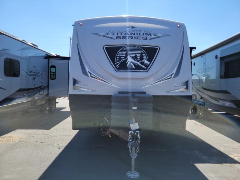 With any Timber Ridge Titanium Series travel trailer by Outdoors RV you will enjoy the sleek design frameless thermal pane windows, along with the silver fiberglass front cap and Titanium Series graphics package. The rugged 8' chassis with 5,100 lb. axles and XL ground clearance will make maneuvering tougher terrain easier than ever, and there is a ground control TT auto leveling system for hassle-free set-up. Each model includes LG solid surface countertops, mountain lodge interiors, hardwood slide out fascia(s), and many more comforts!