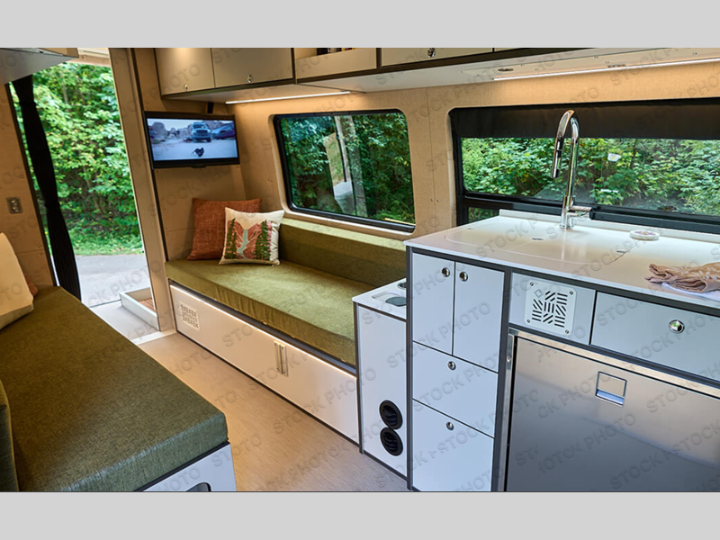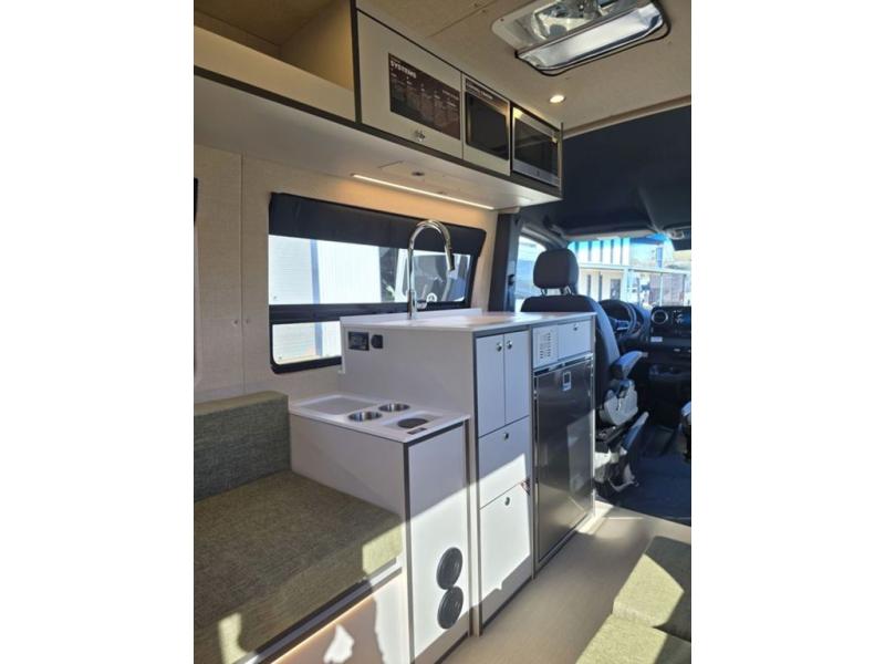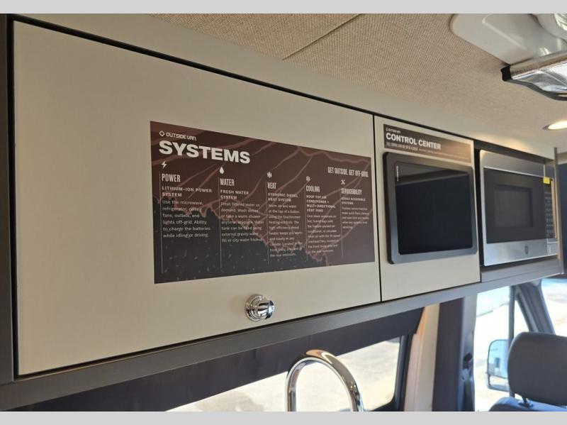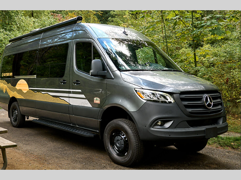 The Outside Van Parks Class B diesel motorhome is perfect for those who want to combine outdoor adventure and comfortable travel! There is an MBUX multimedia system, active lane keeping, distance, and blind spot assist, plus an all-wheel drivetrain that will let you tackle tougher terrain. The Full Interior Foundation Package includes insulation, strategically added infrastructure, and woven vinyl flooring to name a few durable construction materials. A 310ah Lithium-ion battery power system and 120V outlets will keep you powered up, while the rooftop A/C and dual-zone hydronic heating system keep you comfortable. You will also appreciate the parking package with a 360° camera, and the 180° rear door hinges, making it easier than ever to pack gear, freshen up in the bath, or let fresh air in!
