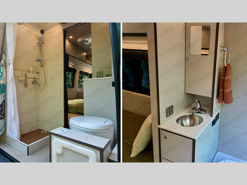 Plan to do and see it all in this cozy coach for two! Once you stop for the day, you can make lunch on the removable induction cooktop or in the overhead microwave, and there is a stainless steel refrigerator to keep cold items fresh. The flip-out convertible bed and seating system can be used for dining and sleeping space for added convenience, and there is overhead cabinetry to keep your things tidy. The outback washroom features an electric flush cassette toilet, a high-top shower with an extended height ceiling, a vanity with hot/cold water, and more that will allow you to easily clean up each day.
