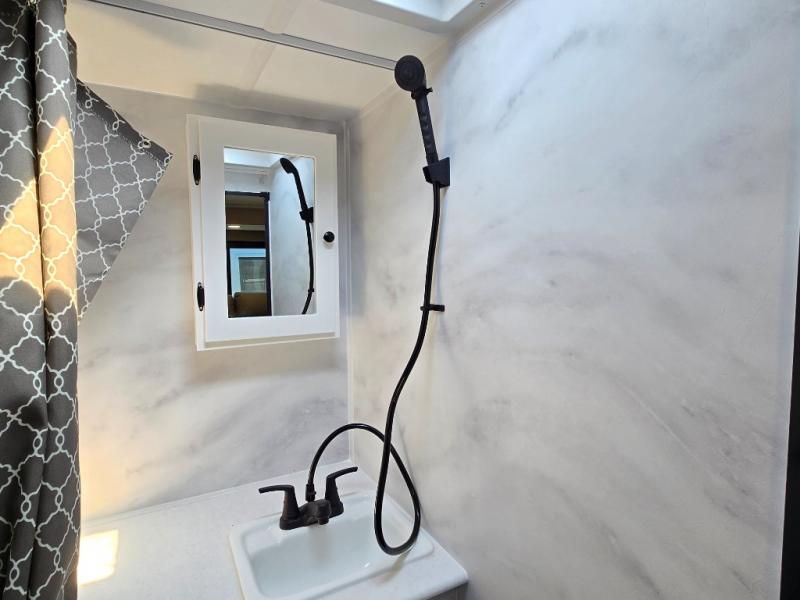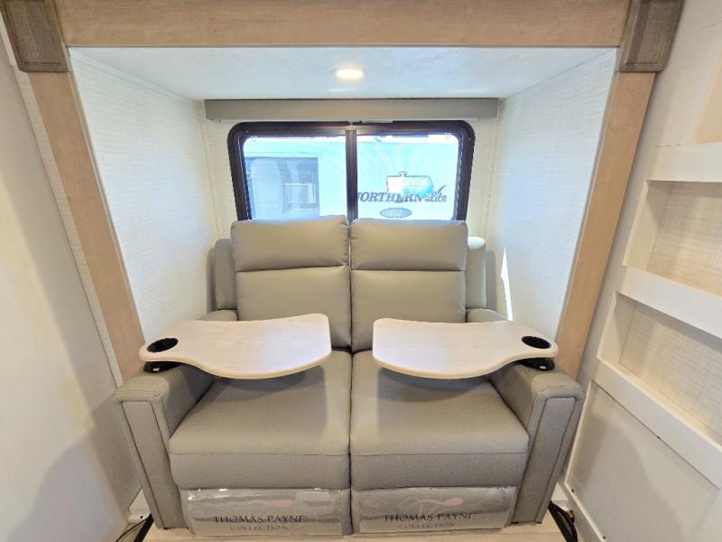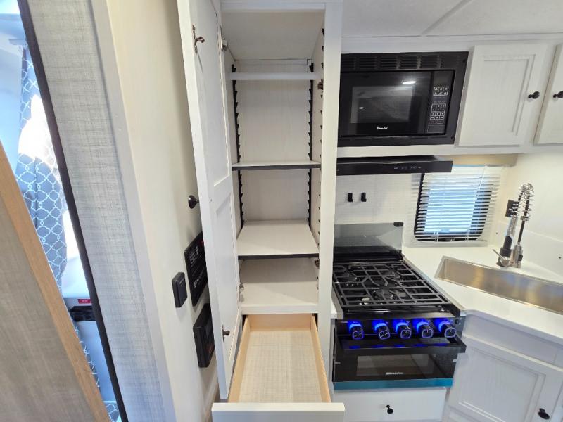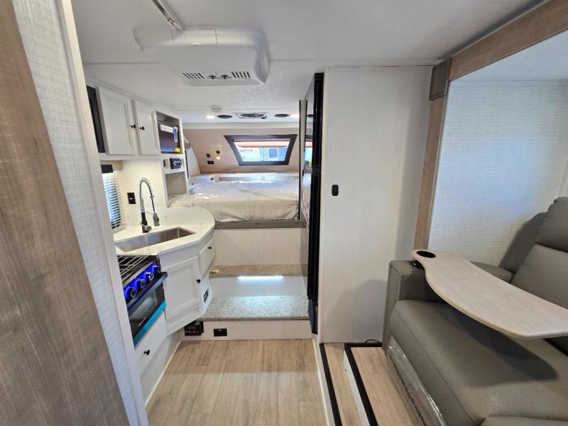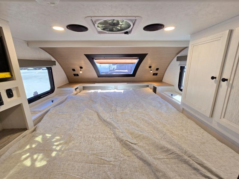 You will love all of the extra space provided in this hard side truck camper with the 40" x 62" booth dinette slide! If you're not needing the additional sleeping space provided by the dinette, choose the optional theater seating! Prepare your best meals with the cooktop, store your canned goods in the wardrobe/pantry, and and leftovers in the refrigerator, plus there is a microwave to pop a bag of popcorn at night. After a fun day of fishing, freshen up in the wet bath and relax on the front queen bed with a wrap around night stand, chests on either side, and an entertainment center. There is even a closet to keep clothes wrinkle-free!