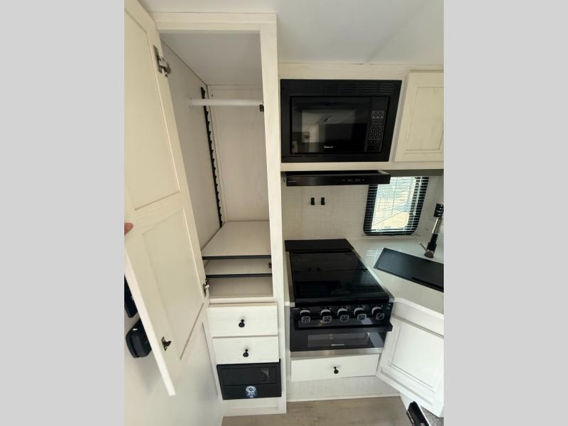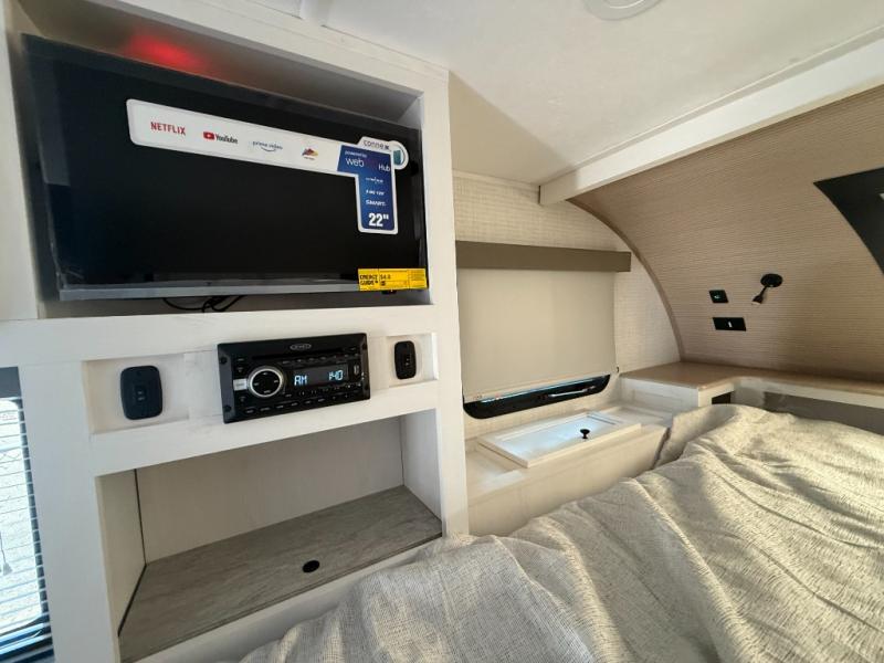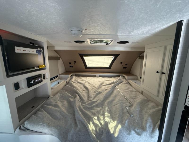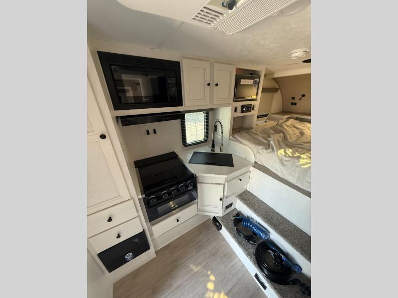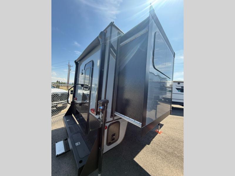 You will love all of the extra space provided in this hard side truck camper with the 40" x 62" booth dinette slide! If you're not needing the additional sleeping space provided by the dinette, choose the optional theater seating! Prepare your best meals with the cooktop, store your canned goods in the wardrobe/pantry, and and leftovers in the refrigerator, plus there is a microwave to pop a bag of popcorn at night. After a fun day of fishing, freshen up in the wet bath and relax on the front queen bed with a wrap around night stand, chests on either side, and an entertainment center. There is even a closet to keep clothes wrinkle-free!