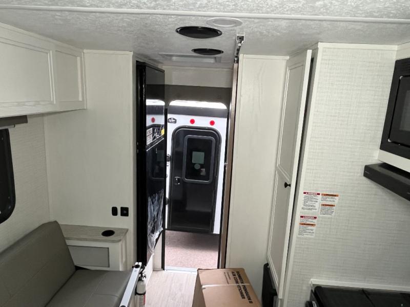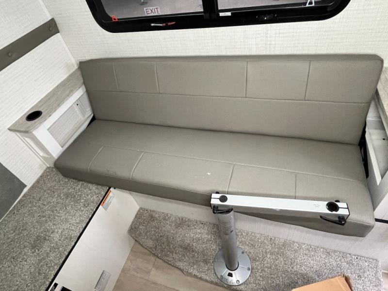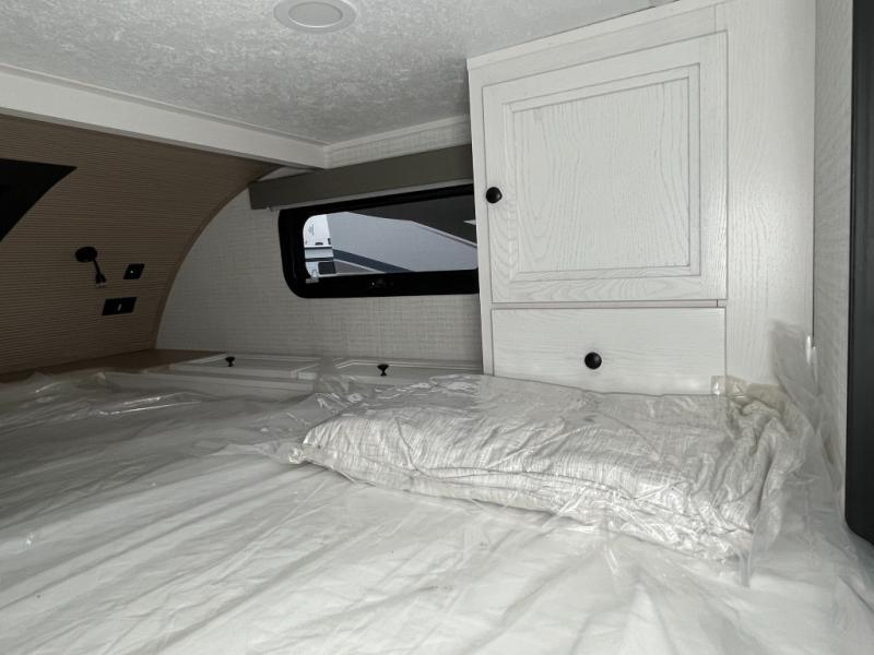 Pick your favorite fishing spot and load up this hard side truck camper! You can fry your catch of the day on the three burner cooktop and enjoy a cold beverage from the refrigerator while you cook it. The 60" jackknife sofa offers a comfortable place for an afternoon nap or for an extra guest to sleep at night while you sleep on the front queen bed which has a wrap around nightstand, storage chests on either side, and a closet to keep your clothes wrinkle-free. If you're needing more sleeping space, you might consider adding the optional drop-down bunk above the sofa!