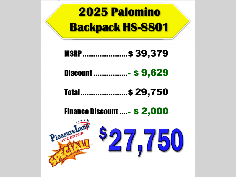 New 2025 Palomino Backpack Edition HS 8801 Truck Camper
