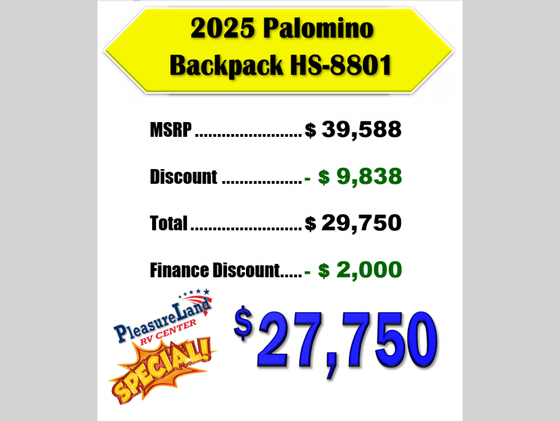 New 2025 Palomino Backpack Edition HS-8801 Truck Camper