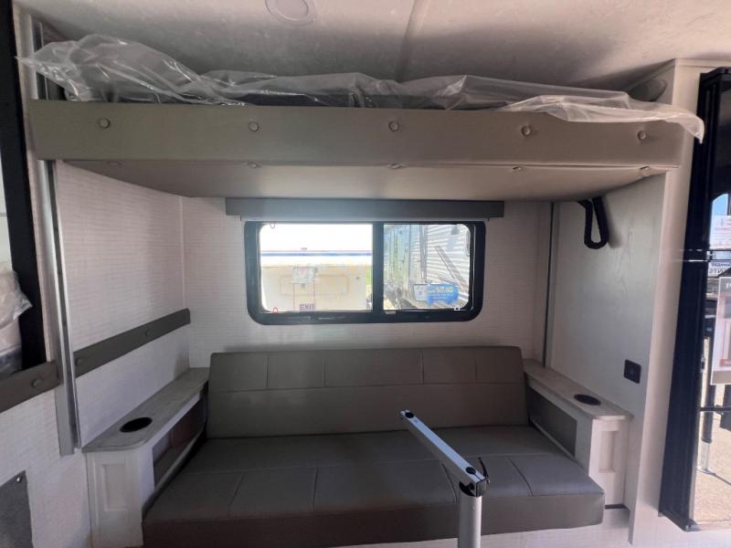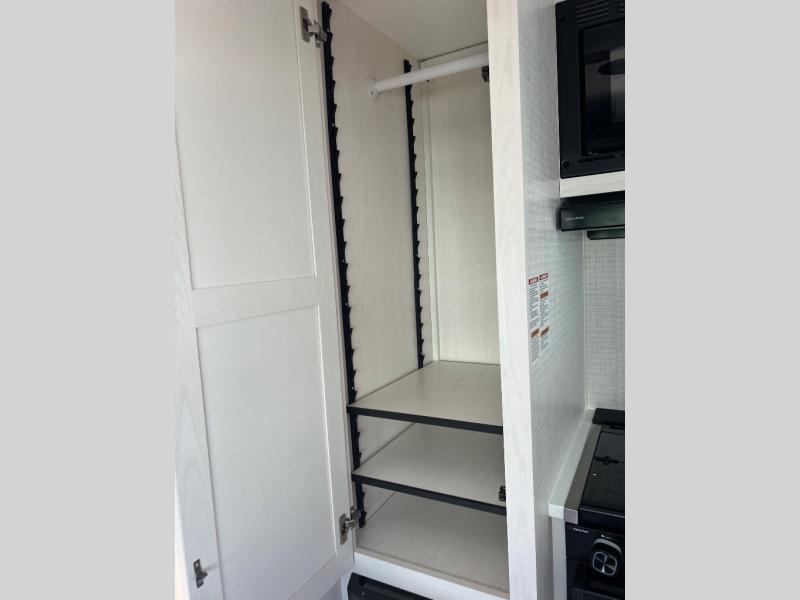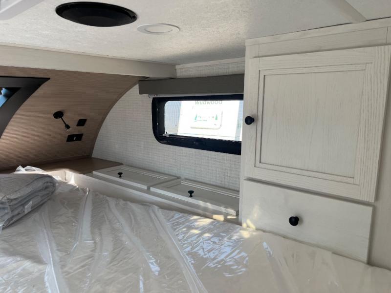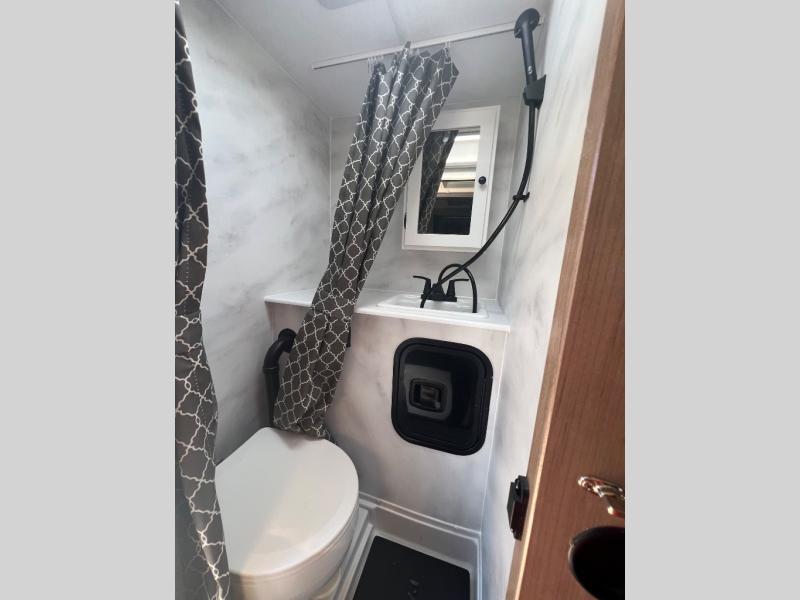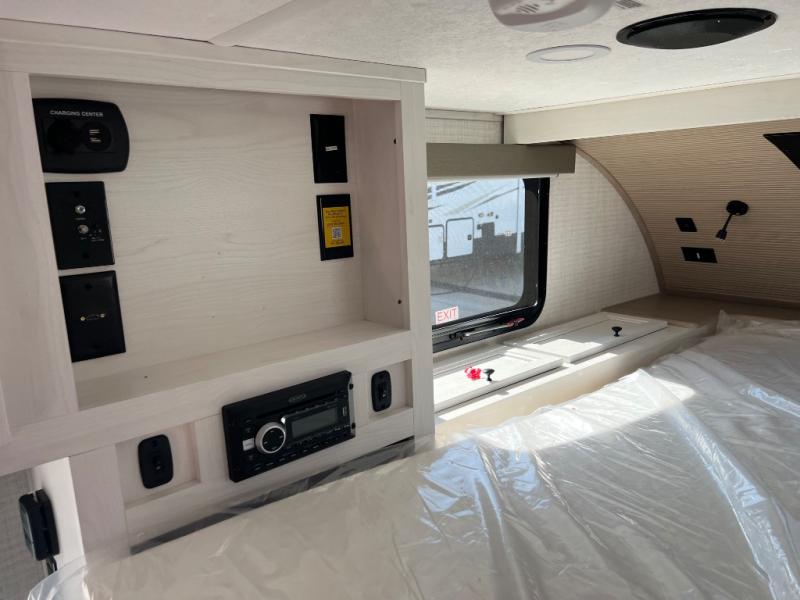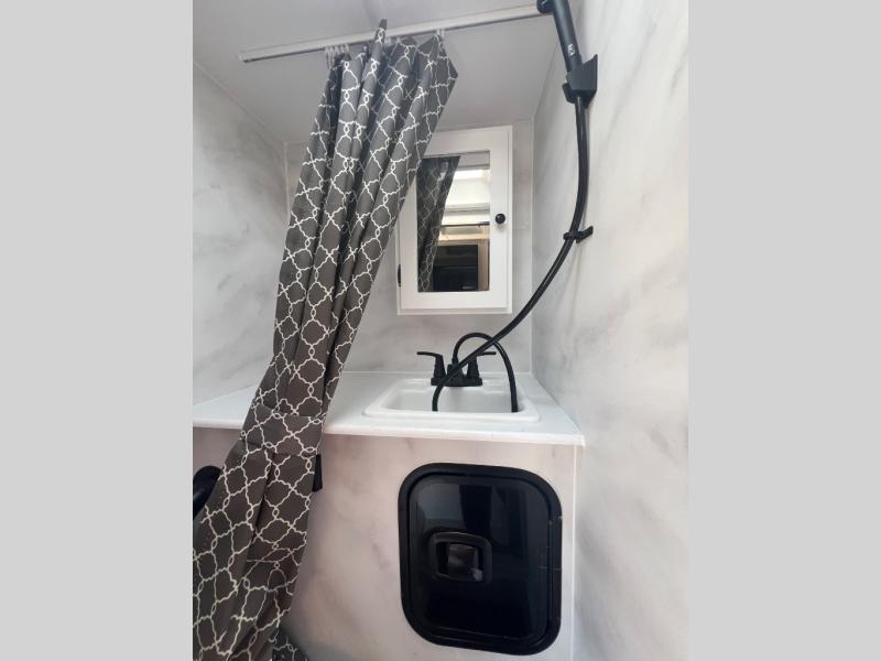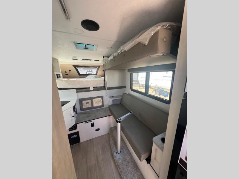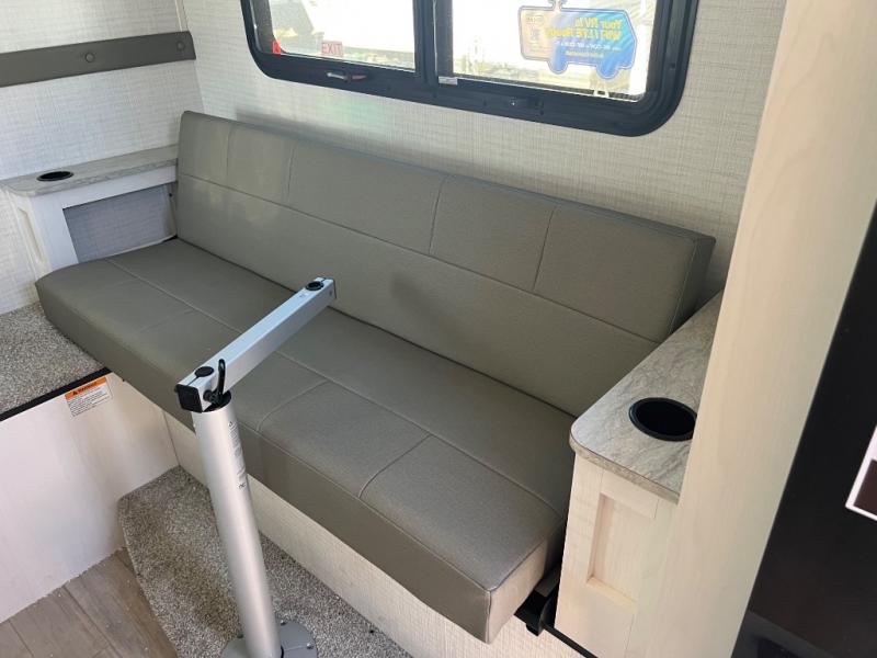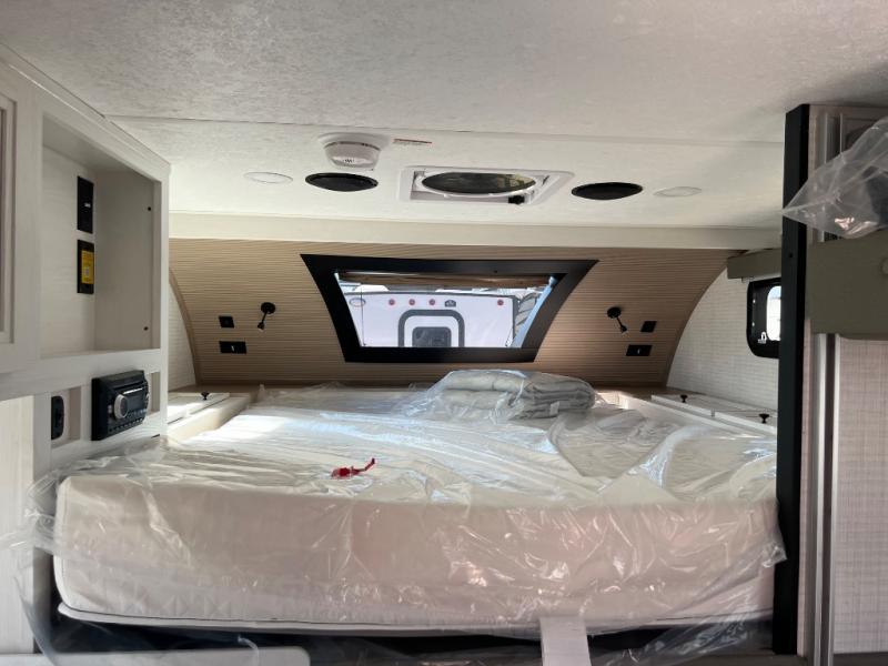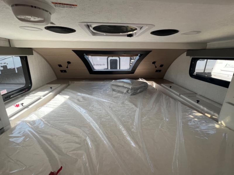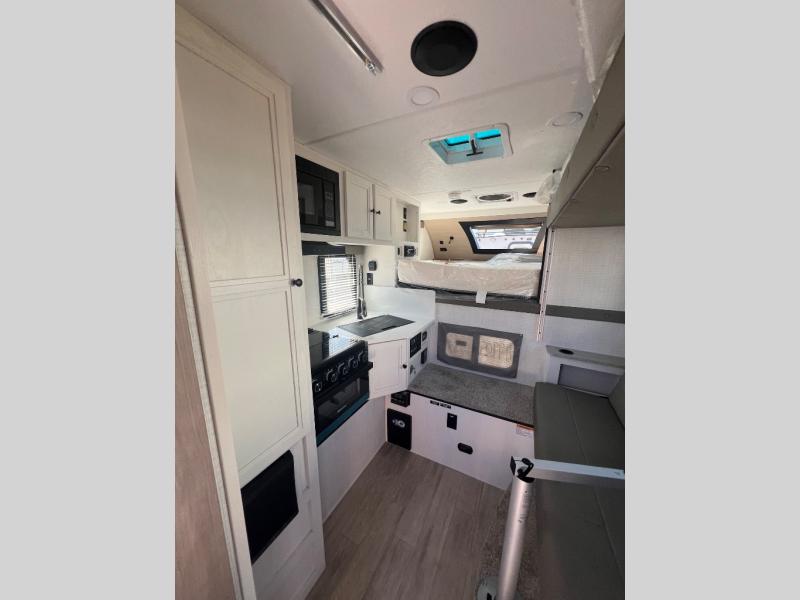 Pick your favorite fishing spot and load up this hard side truck camper! You can fry your catch of the day on the cooktop and enjoy a cold beverage from the refrigerator while you cook it. The 60" jackknife sofa offers a comfortable place for an afternoon nap or for an extra guest to sleep at night while you sleep on the front queen bed which has a wrap around nightstand, storage chests on either side, and a closet to keep your clothes wrinkle-free. If you're needing more sleeping space, you might consider adding the optional drop-down bunk above the sofa!