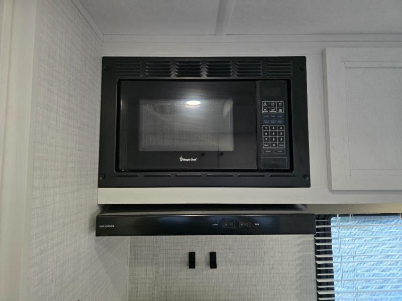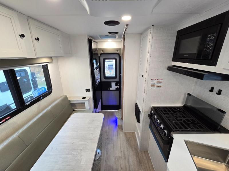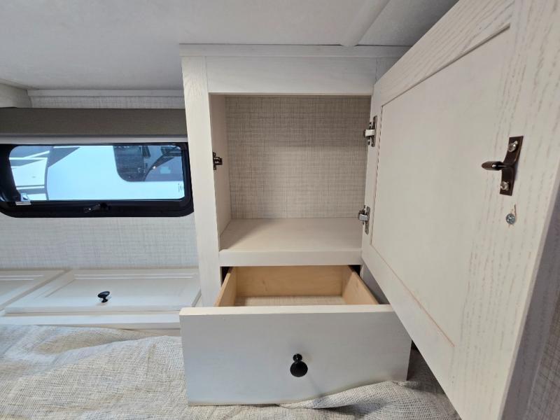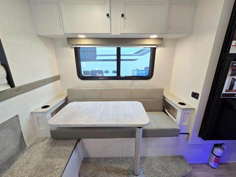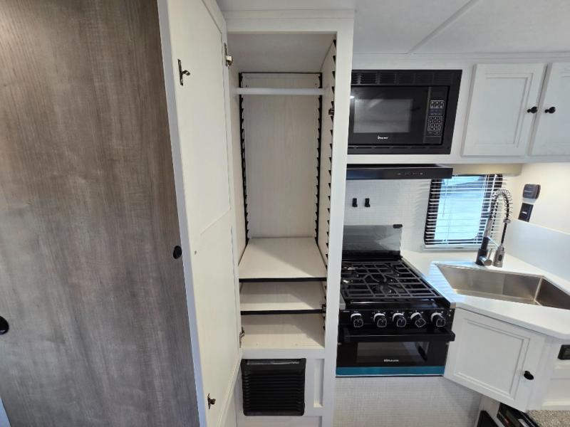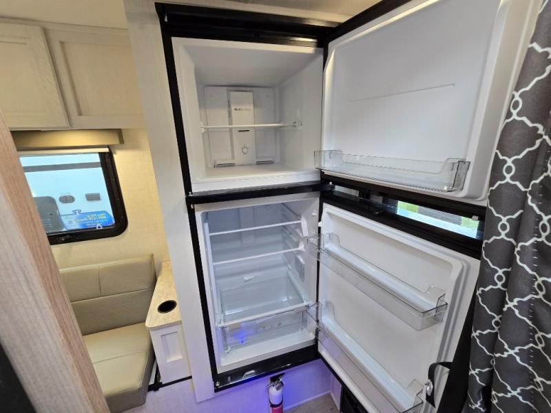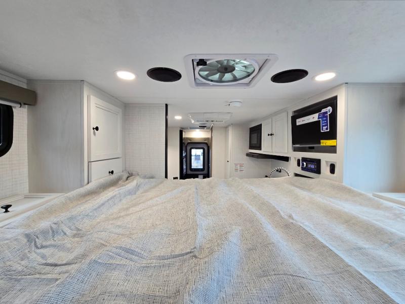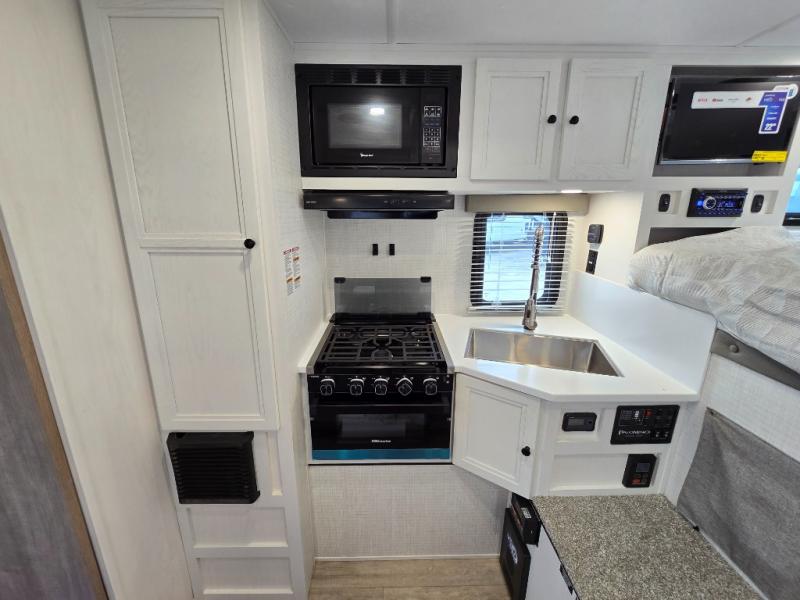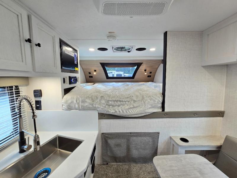 Pick your favorite fishing spot and load up this hard side truck camper! You can fry your catch of the day on the cooktop and enjoy a cold beverage from the refrigerator while you cook it. The 60" jackknife sofa offers a comfortable place for an afternoon nap or for an extra guest to sleep at night while you sleep on the front queen bed which has a wrap around nightstand, storage chests on either side, and a closet to keep your clothes wrinkle-free. If you're needing more sleeping space, you might consider adding the optional drop-down bunk above the sofa!