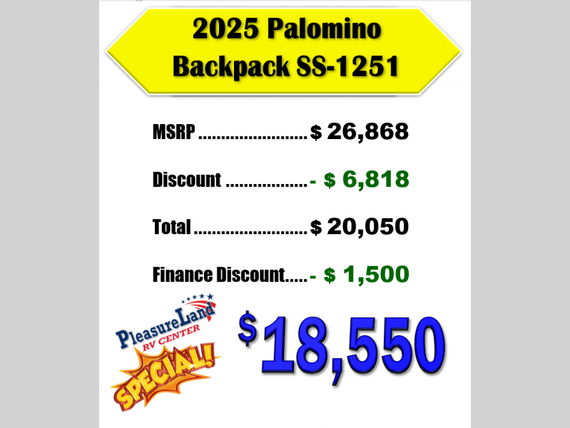 New 2025 Palomino Backpack Edition SS-1251 Truck Camper
