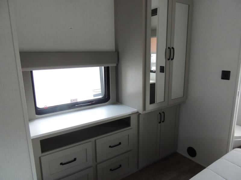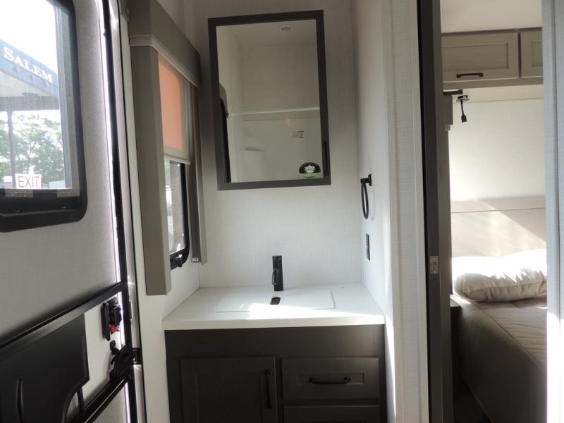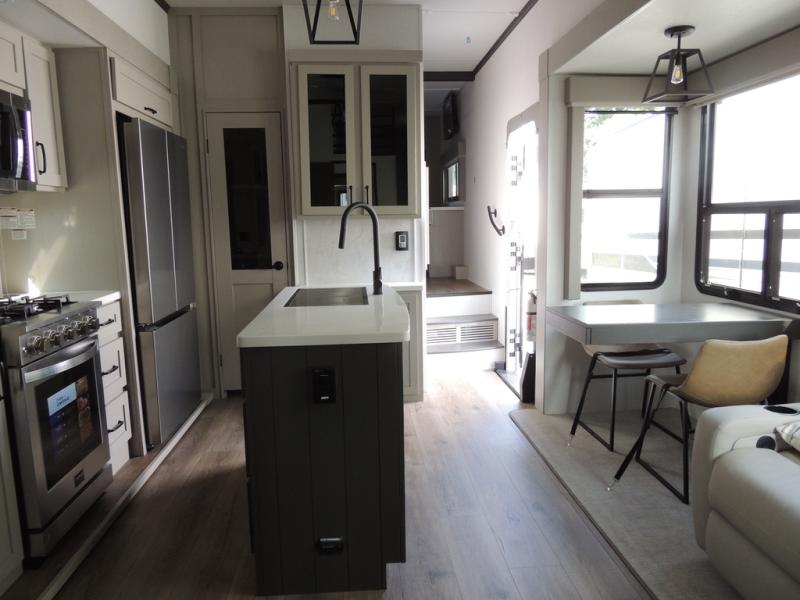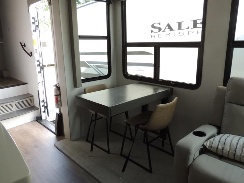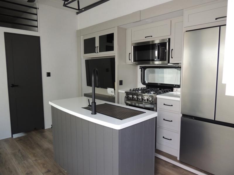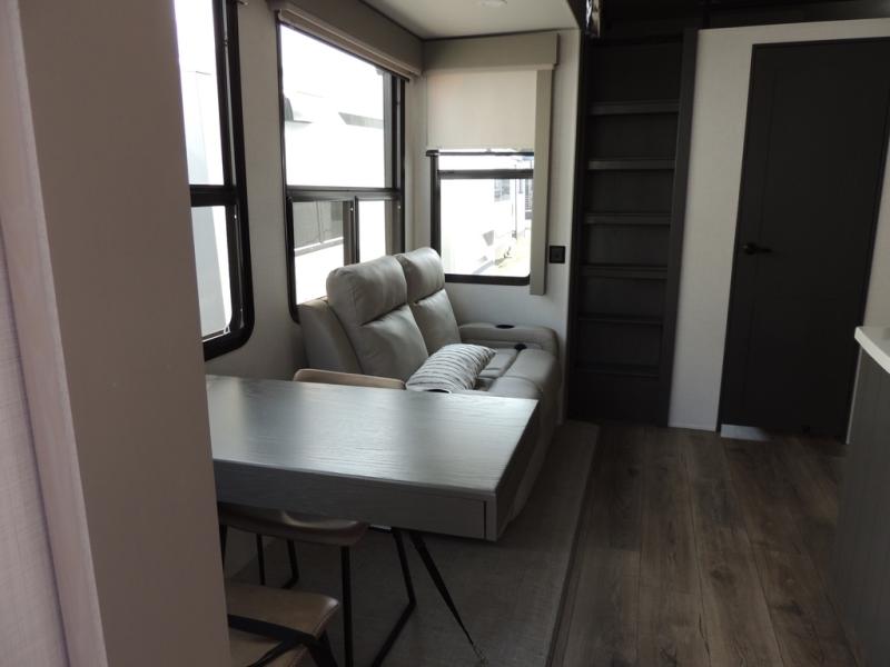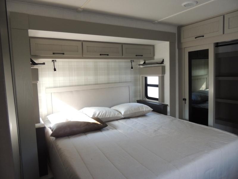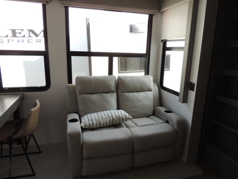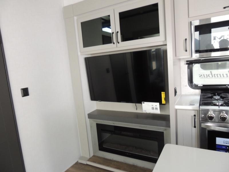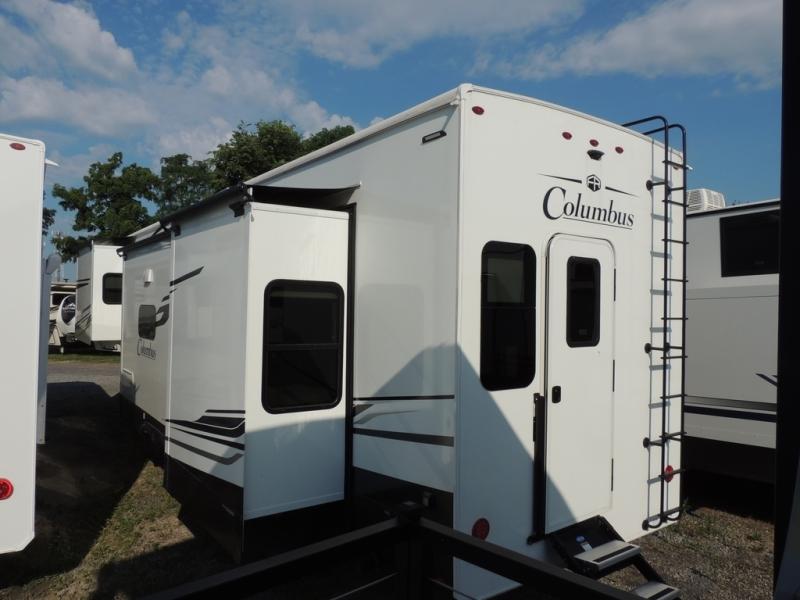 Experience a different camping life with residential furnishings and high end features in each one of these Palomino Columbus fifth wheels! The 101" wide body lets you walk around more throughout and the all-welded aluminum-frame superstructure has a snap-in ceiling molding to hold up through every adventure. Don't leave any of your gear behind either when you can easily store it in the climate controlled drop frame storage area. On the exterior, you'll find a heated utility convenience center, an outside sprayer to keep the dirt outside where it belongs, and magnetic compartment door holds to keep them from falling on you as you grab your items. Plus, there are some modern features that will really seal the deal like the Wi-Fi Booster with 4G LTE capability prep, upgraded true solid-surface countertops, power theater seating with USB charging, and a 260W solar panel for off-grid camping!