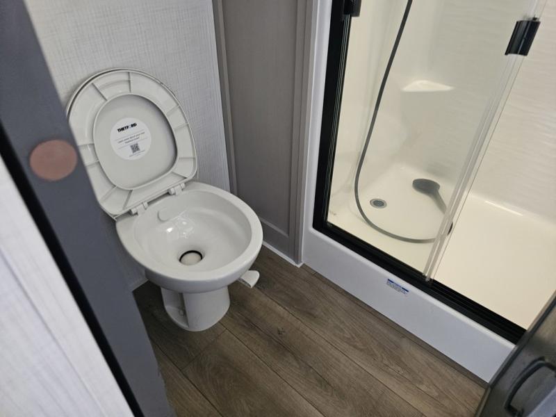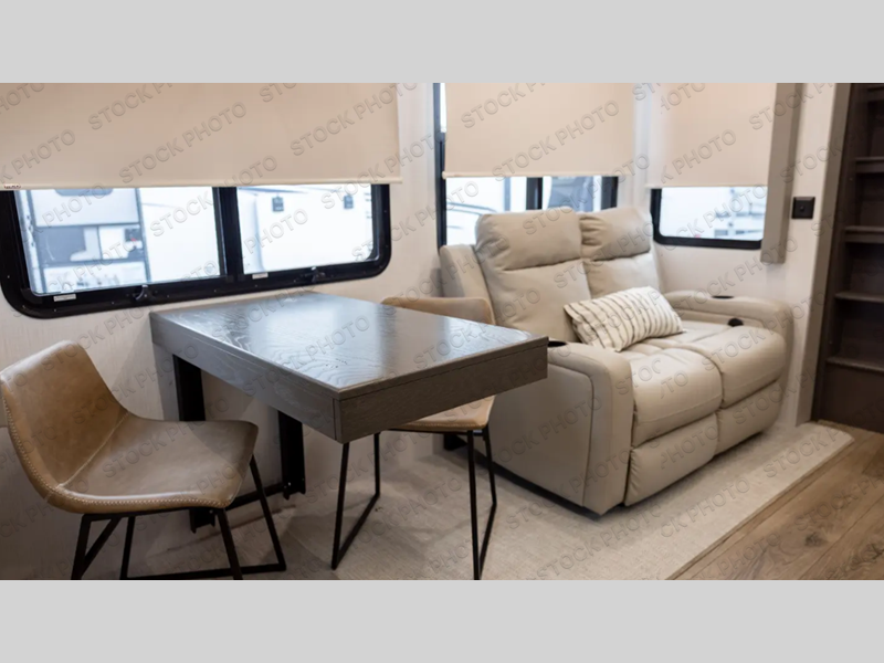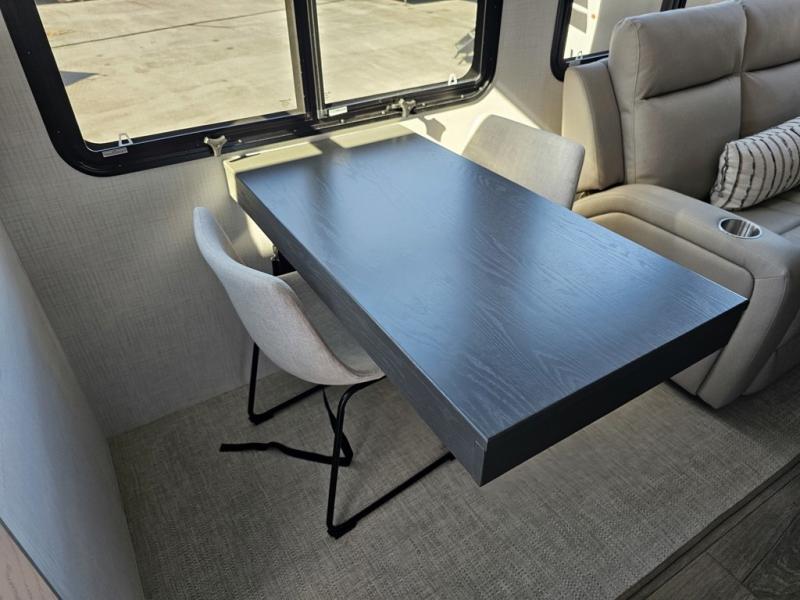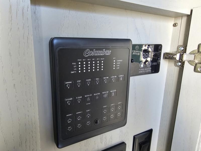 Experience a different camping life with residential furnishings and high end features in each one of these Palomino Columbus fifth wheels! The 101" wide body lets you walk around more throughout and the all-welded aluminum-frame superstructure has a snap-in ceiling molding to hold up through every adventure. Don't leave any of your gear behind either when you can easily store it in the climate controlled drop frame storage area. On the exterior, you'll find a heated utility convenience center, an outside sprayer to keep the dirt outside where it belongs, and magnetic compartment door holds to keep them from falling on you as you grab your items. Plus, there are some modern features that will really seal the deal like the Wi-Fi Booster with 4G LTE capability prep, upgraded true solid-surface countertops, power theater seating with USB charging, and a 260W solar panel for off-grid camping!