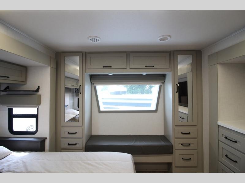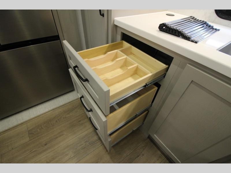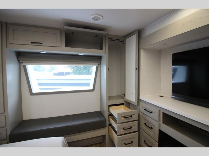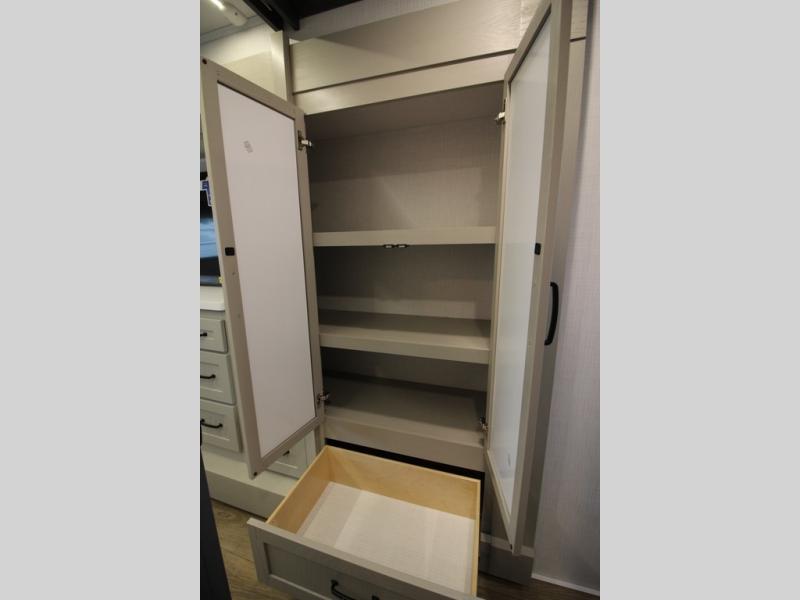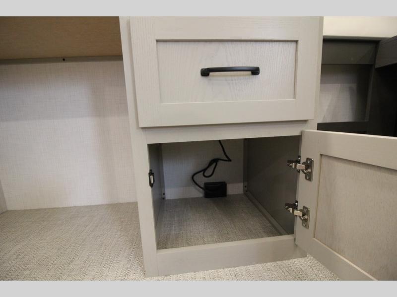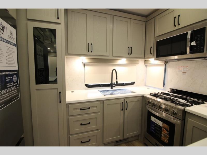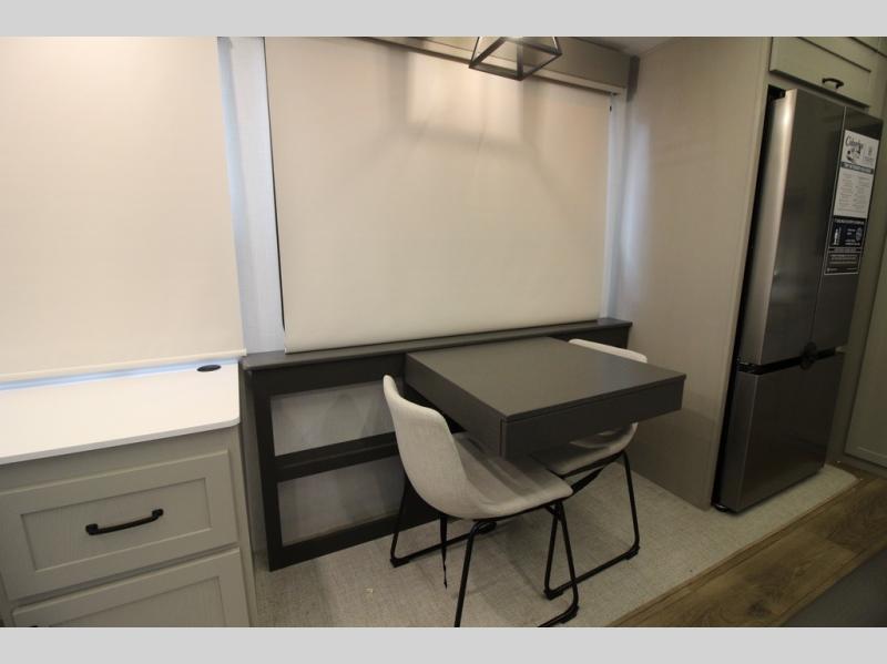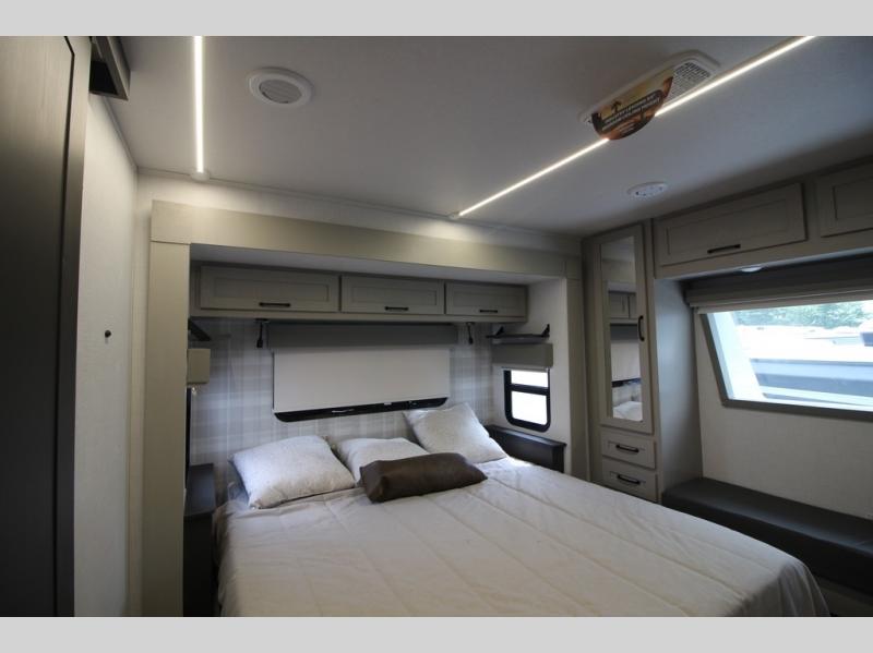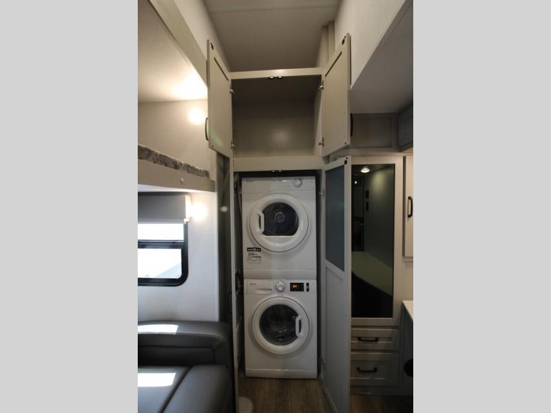 Experience a different camping life with residential furnishings and high end features in each one of these Palomino Columbus fifth wheels! The 101" wide body lets you walk around more throughout and the all-welded aluminum-frame superstructure has a snap-in ceiling molding to hold up through every adventure. Don't leave any of your gear behind either when you can easily store it in the climate controlled drop frame storage area. On the exterior, you'll find a heated utility convenience center, an outside sprayer to keep the dirt outside where it belongs, and magnetic compartment door holds to keep them from falling on you as you grab your items. Plus, there are some modern features that will really seal the deal like the Wi-Fi Booster with 4G LTE capability prep, upgraded true solid-surface countertops, power theater seating with USB charging, and a 260W solar panel for off-grid camping!
