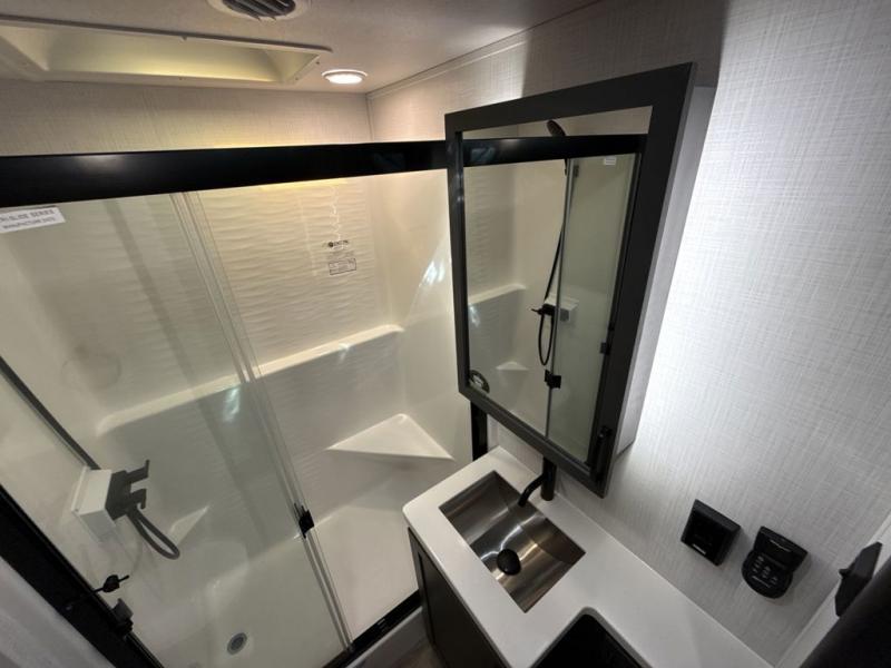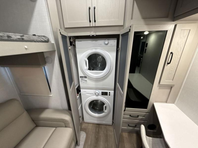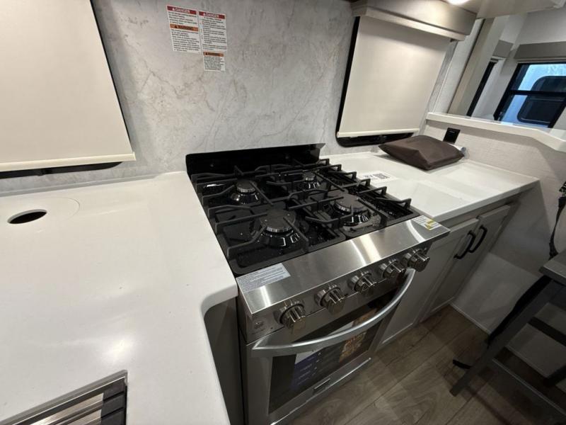 Experience a different camping life with residential furnishings and high end features in each one of these Palomino Columbus fifth wheels! The 101" wide body lets you walk around more throughout and the all-welded aluminum-frame superstructure has a snap-in ceiling molding to hold up through every adventure. Don't leave any of your gear behind either when you can easily store it in the climate controlled drop frame storage area. On the exterior, you'll find a heated utility convenience center, an outside sprayer to keep the dirt outside where it belongs, and magnetic compartment door holds to keep them from falling on you as you grab your items. Plus, there are some modern features that will really seal the deal like the Wi-Fi Booster with 4G LTE capability prep, upgraded true solid-surface countertops, power theater seating with USB charging, and a 260W solar panel for off-grid camping!