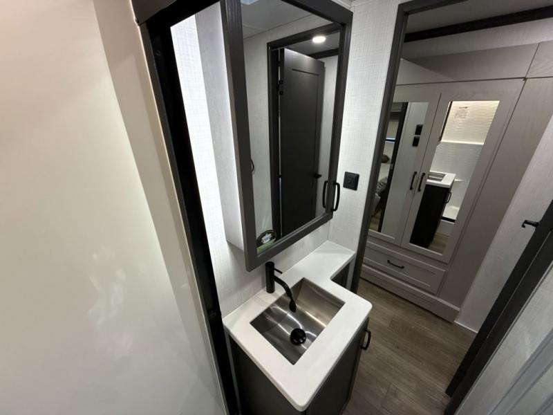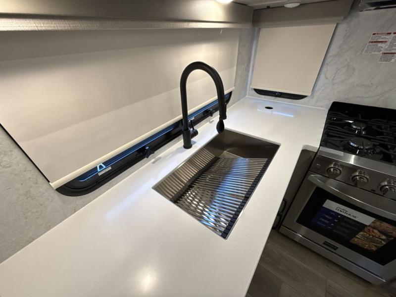 Experience a different camping life with residential furnishings and high end features in each one of these Palomino Columbus fifth wheels! The 101" wide body lets you walk around more throughout and the all-welded aluminum-frame superstructure has a snap-in ceiling molding to hold up through every adventure. Don't leave any of your gear behind either when you can easily store it in the climate controlled drop frame storage area. On the exterior, you'll find a heated utility convenience center, an outside sprayer to keep the dirt outside where it belongs, and magnetic compartment door holds to keep them from falling on you as you grab your items. Plus, there are some modern features that will really seal the deal like the Wi-Fi Booster with 4G LTE capability prep, upgraded true solid-surface countertops, power theater seating with USB charging, and a 260W solar panel for off-grid camping!