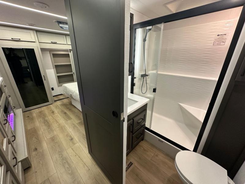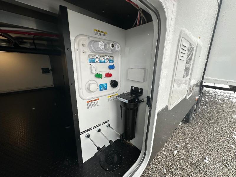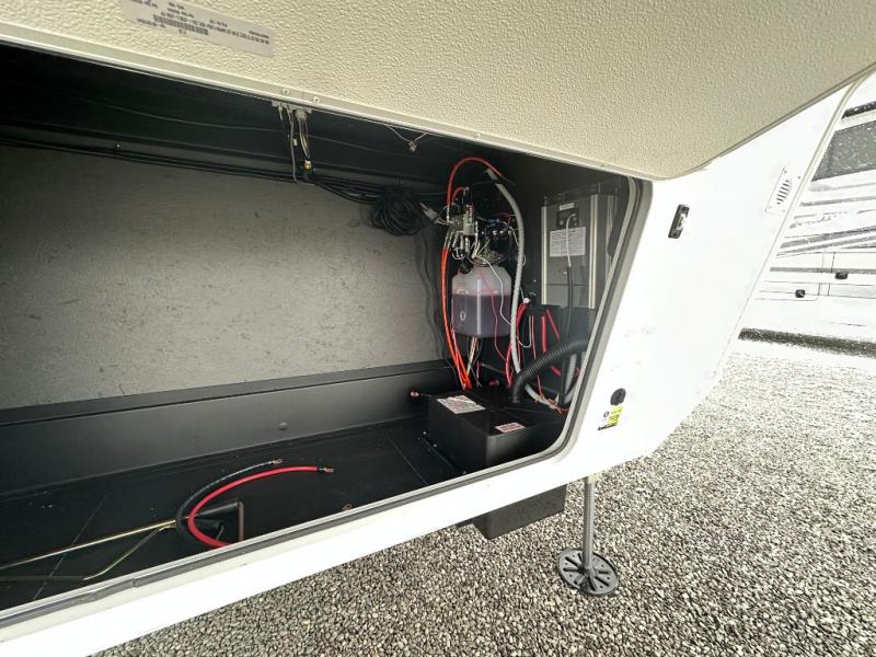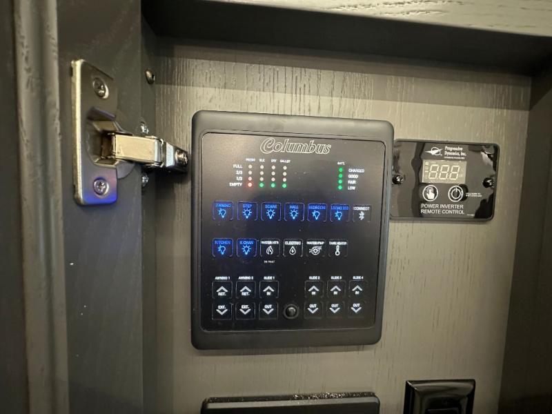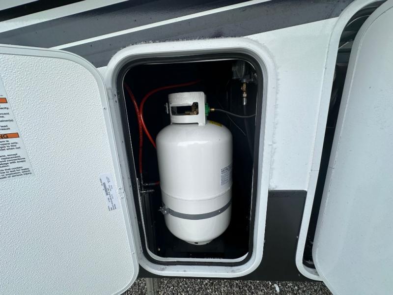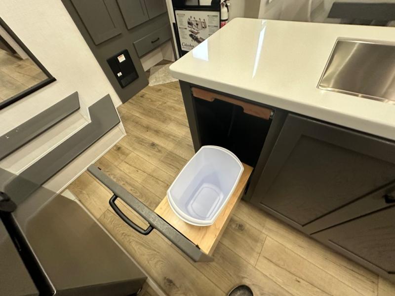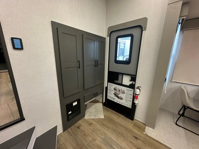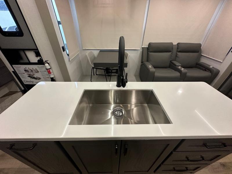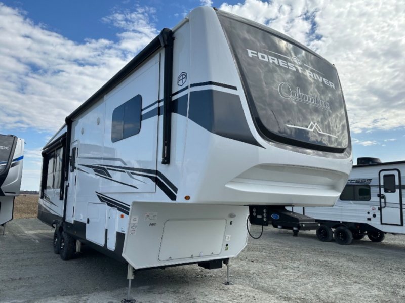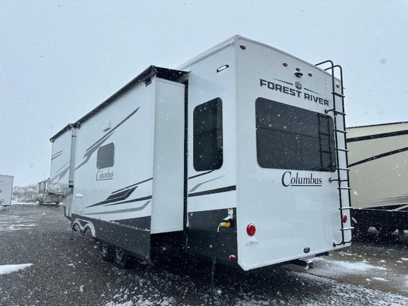 Experience a different camping life with residential furnishings and high end features in each one of these Palomino Columbus fifth wheels! The 101" wide body lets you walk around more throughout and the all-welded aluminum-frame superstructure has a snap-in ceiling molding to hold up through every adventure. Don't leave any of your gear behind either when you can easily store it in the climate controlled drop frame storage area. On the exterior, you'll find a heated utility convenience center, an outside sprayer to keep the dirt outside where it belongs, and magnetic compartment door holds to keep them from falling on you as you grab your items. Plus, there are some modern features that will really seal the deal like the Wi-Fi Booster with 4G LTE capability prep, upgraded true solid-surface countertops, power theater seating with USB charging, and a 260W solar panel for off-grid camping!