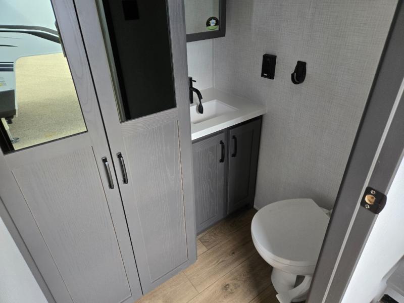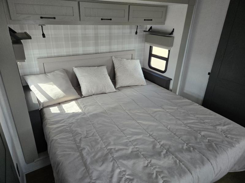 Experience a different camping life with residential furnishings and high end features in each one of these Palomino Columbus fifth wheels! The 101" wide body lets you walk around more throughout and the all-welded aluminum-frame superstructure has a snap-in ceiling molding to hold up through every adventure. Don't leave any of your gear behind either when you can easily store it in the climate controlled drop frame storage area. On the exterior, you'll find a heated utility convenience center, an outside sprayer to keep the dirt outside where it belongs, and magnetic compartment door holds to keep them from falling on you as you grab your items. Plus, there are some modern features that will really seal the deal like the Wi-Fi Booster with 4G LTE capability prep, upgraded true solid-surface countertops, power theater seating with USB charging, and a 260W solar panel for off-grid camping!