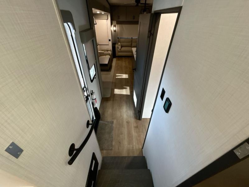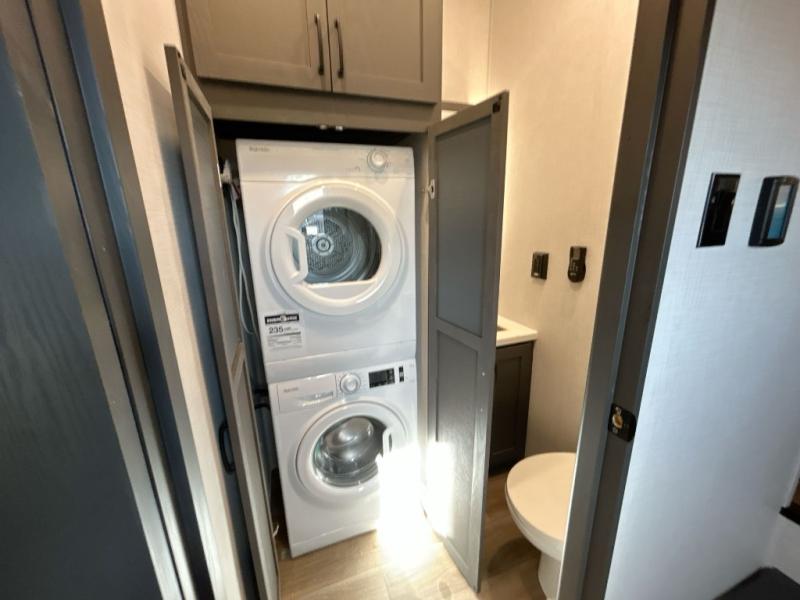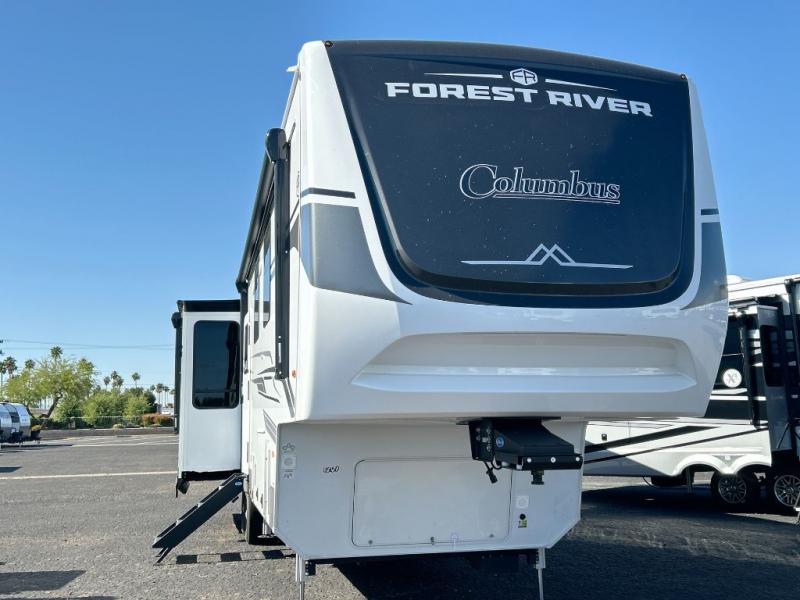 Experience a different camping life with residential furnishings and high end features in each one of these Palomino Columbus fifth wheels! The 101" wide body lets you walk around more throughout and the all-welded aluminum-frame superstructure has a snap-in ceiling molding to hold up through every adventure. Don't leave any of your gear behind either when you can easily store it in the climate controlled drop frame storage area. On the exterior, you'll find a heated utility convenience center, an outside sprayer to keep the dirt outside where it belongs, and magnetic compartment door holds to keep them from falling on you as you grab your items. Plus, there are some modern features that will really seal the deal like the Wi-Fi Booster with 4G LTE capability prep, upgraded true solid-surface countertops, power theater seating with USB charging, and a 260W solar panel for off-grid camping!