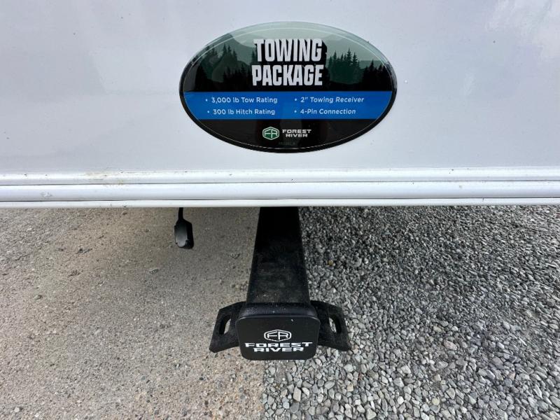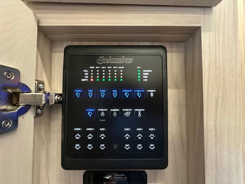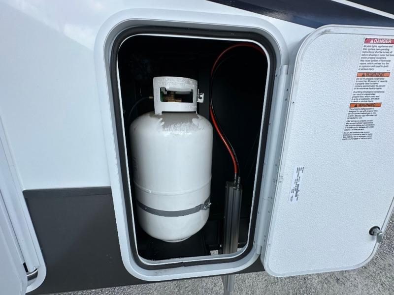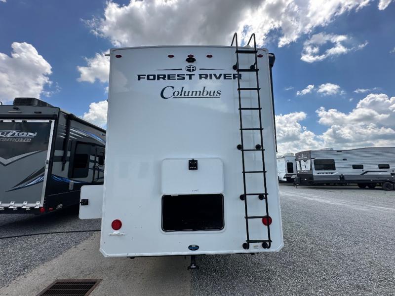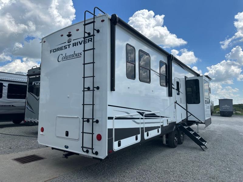 Experience a different camping life with residential furnishings and high end features in each one of these Palomino Columbus fifth wheels! The 101" wide body lets you walk around more throughout and the all-welded aluminum-frame superstructure has a snap-in ceiling molding to hold up through every adventure. Don't leave any of your gear behind either when you can easily store it in the climate controlled drop frame storage area. On the exterior, you'll find a heated utility convenience center, an outside sprayer to keep the dirt outside where it belongs, and magnetic compartment door holds to keep them from falling on you as you grab your items. Plus, there are some modern features that will really seal the deal like the Wi-Fi Booster with 4G LTE capability prep, upgraded true solid-surface countertops, power theater seating with USB charging, and a 260W solar panel for off-grid camping!