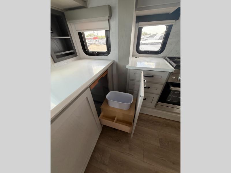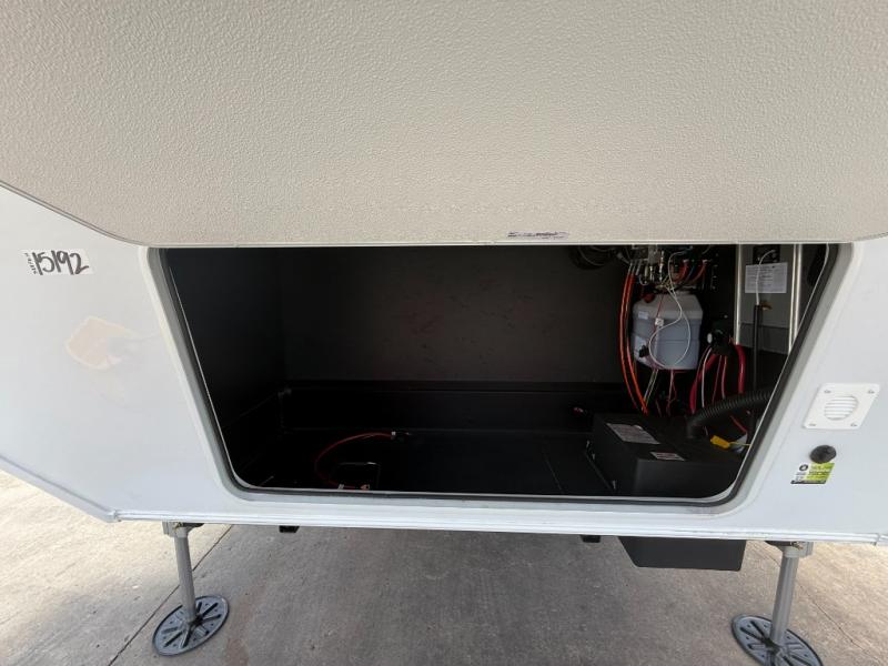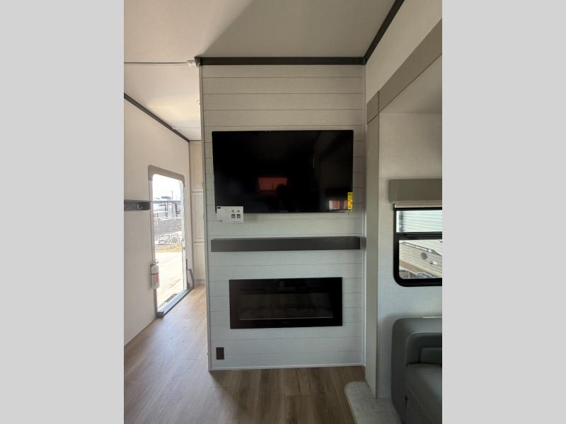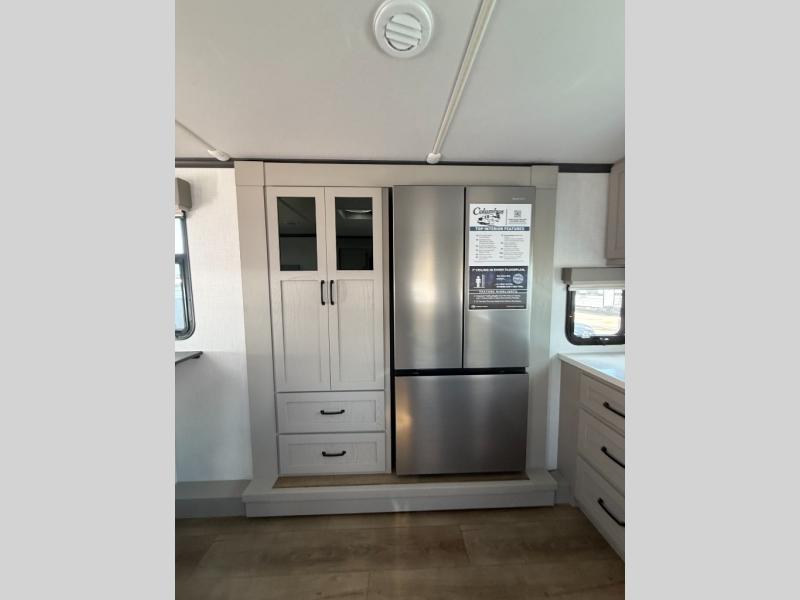 Experience a different camping life with residential furnishings and high end features in each one of these Palomino Columbus fifth wheels! The 101" wide body lets you walk around more throughout and the all-welded aluminum-frame superstructure has a snap-in ceiling molding to hold up through every adventure. Don't leave any of your gear behind either when you can easily store it in the climate controlled drop frame storage area. On the exterior, you'll find a heated utility convenience center, an outside sprayer to keep the dirt outside where it belongs, and magnetic compartment door holds to keep them from falling on you as you grab your items. Plus, there are some modern features that will really seal the deal like the Wi-Fi Booster with 4G LTE capability prep, upgraded true solid-surface countertops, power theater seating with USB charging, and a 260W solar panel for off-grid camping!