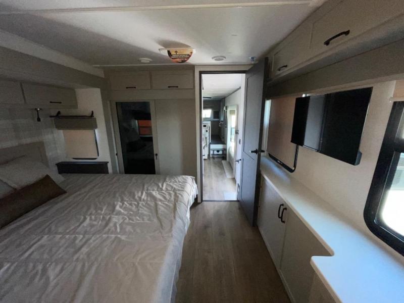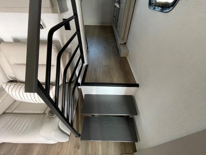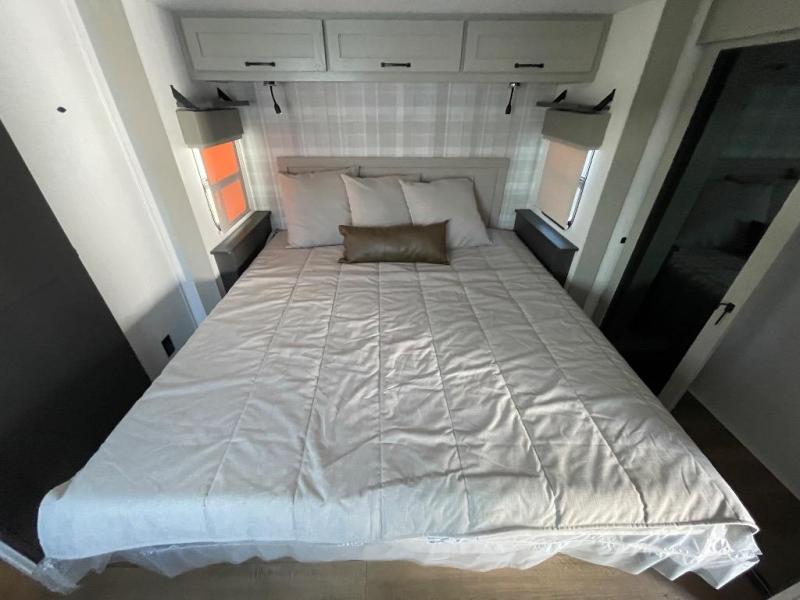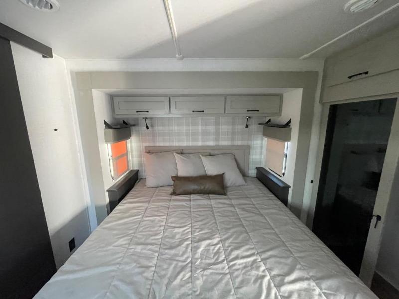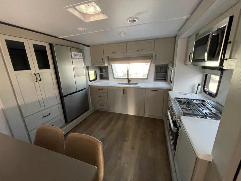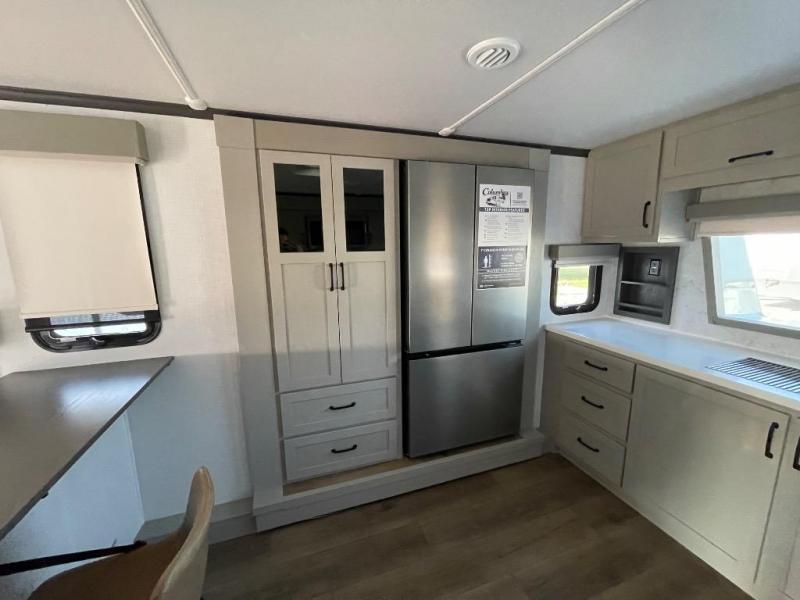 Experience a different camping life with residential furnishings and high end features in each one of these Palomino Columbus fifth wheels! The 101" wide body lets you walk around more throughout and the all-welded aluminum-frame superstructure has a snap-in ceiling molding to hold up through every adventure. Don't leave any of your gear behind either when you can easily store it in the climate controlled drop frame storage area. On the exterior, you'll find a heated utility convenience center, an outside sprayer to keep the dirt outside where it belongs, and magnetic compartment door holds to keep them from falling on you as you grab your items. Plus, there are some modern features that will really seal the deal like the Wi-Fi Booster with 4G LTE capability prep, upgraded true solid-surface countertops, power theater seating with USB charging, and a 260W solar panel for off-grid camping!