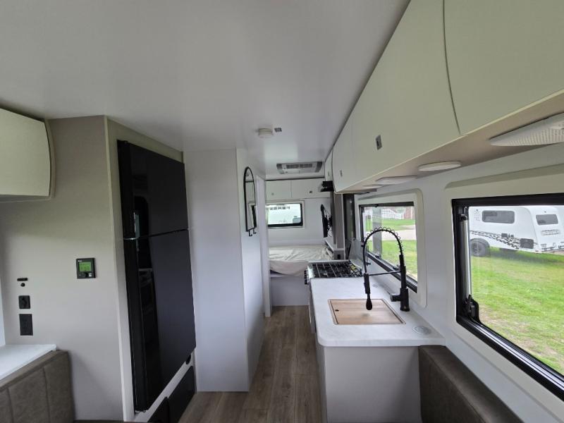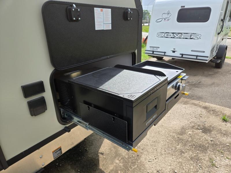 With any Pause Reboot Edition travel trailer by Palomino, you'll enjoy a rugged exterior that features a puncture resistant underbelly and a MORryde Huck-Rivet aluminum frame for added durability. There is also a seamless laminated fiberglass roof and laminated composite fully insulated walls to help extend your camping season. A Victron Solar System features 200 watts of solar power, a 270AH lithium battery, a 3,000W inverter charger, and a 50A solar charger for off-grid capabilities. If you're needing more solar power, there are two optional upgrades that can give you up to 800 watts of power, depending on the upgrade you choose. Additional exterior features include a roof ladder, a Carefree legless awning, and a Voyager rear view camera for easy maneuvering in and out of campsites. Inside, you'll enjoy wrapped solid wood cabinets, Therma Foiled countertops, designer Carefree linoleum, and Piuma dual pane acrylic windows with an integrated blind and screen.