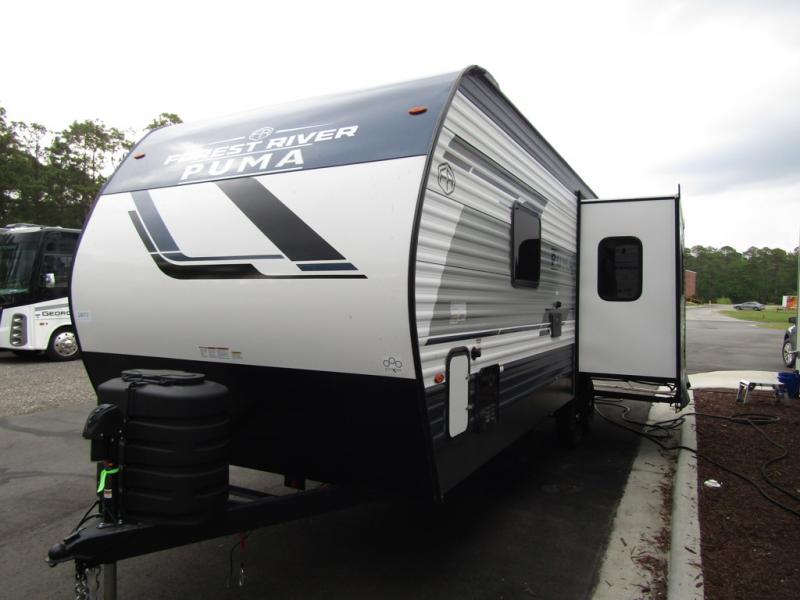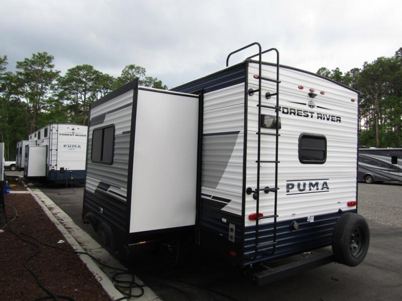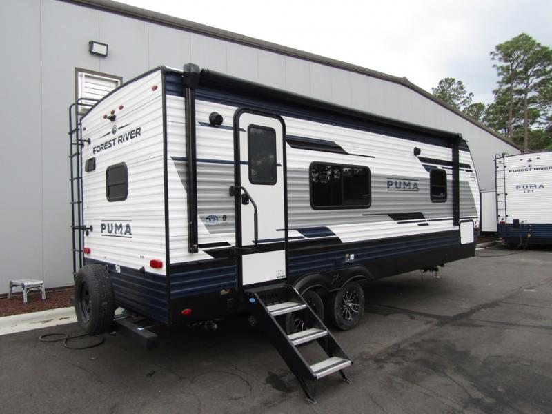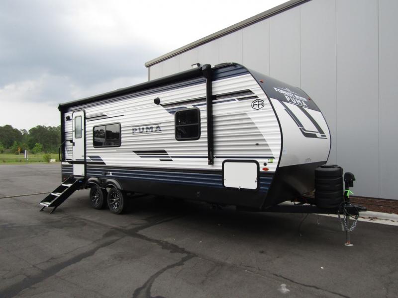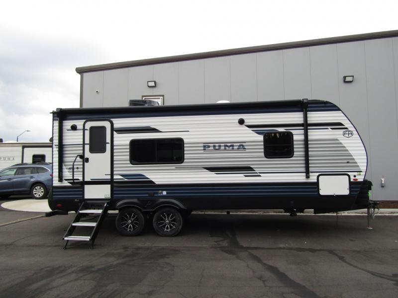 If you're looking for family-fun adventures then you need one of these Palomino Puma fifth wheels or travel trailers! They are built rugged, easy to tow, and jam packed with features. The Darco wrapped underbelly will protect your units vitals through every season and the AlphaPly roofing membrane covers it. They also have new aluminum wheels and a powder coated steel I-beam frame. Inside, the Congoleum linoleum will be easy to keep clean, and the night roller shades will provide privacy when it's time to turn in. You'll also enjoy an electric awning with an LED light strip plus an AM/FM/Bluetooth stereo and two outside speakers to keep the party going!