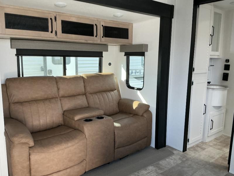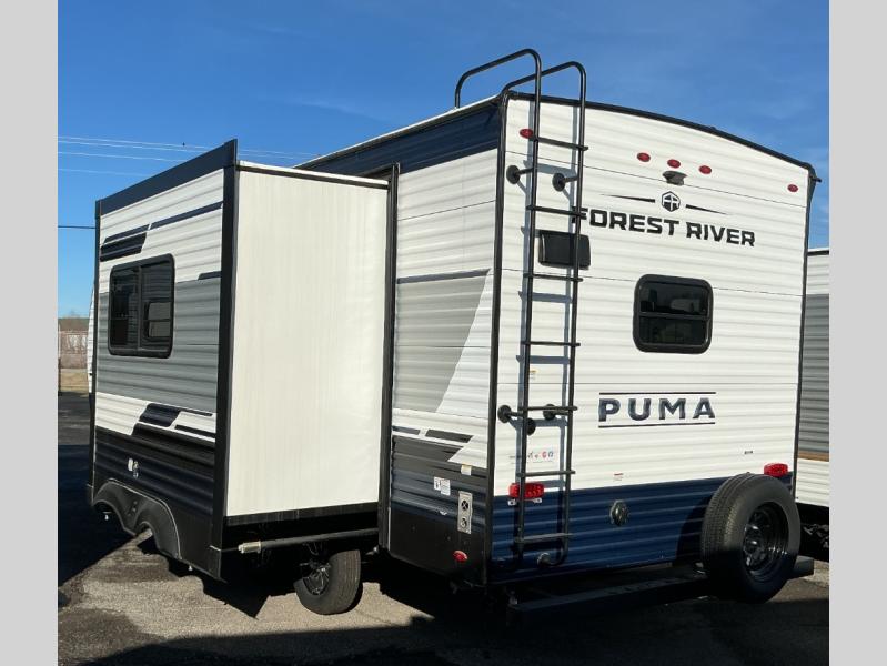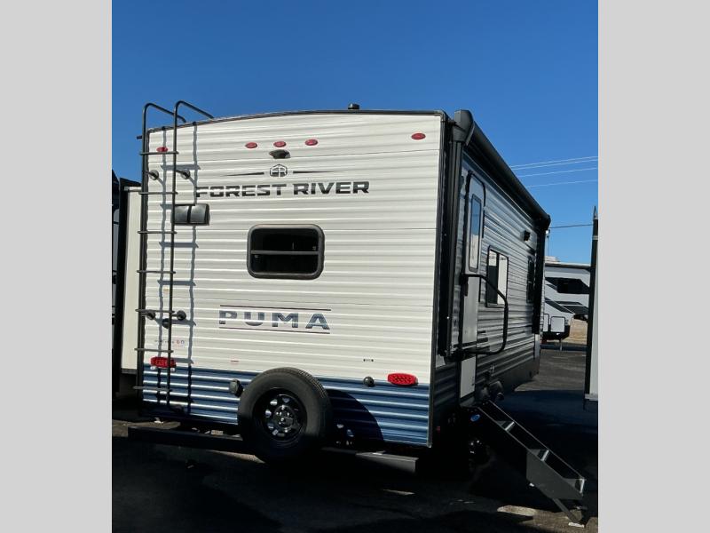 If you're looking for family-fun adventures then you need one of these Palomino Puma fifth wheels or travel trailers! They are built rugged, easy to tow, and jam packed with features. The Darco wrapped underbelly will protect your units vitals and the AlphaPly roofing membrane covers it. They also have new aluminum wheels and a powder coated steel I-beam frame. Inside, the Congoleum linoleum will be easy to keep clean, and the night roller shades will provide privacy when it's time to turn in. You'll also enjoy an electric awning with an LED light strip plus an AM/FM/Bluetooth stereo and two outside speakers to keep the party going!