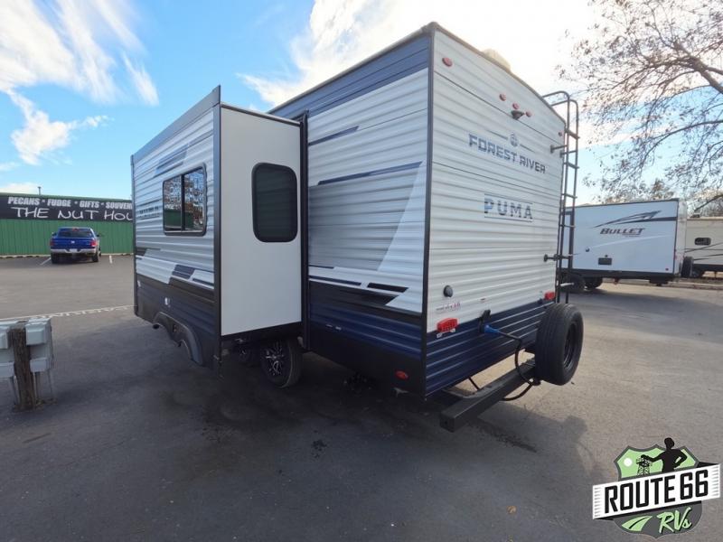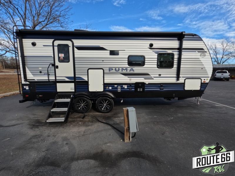 If you're looking for family-fun adventures then you need one of these Palomino Puma fifth wheels or travel trailers! They are built rugged, easy to tow, and jam packed with features. The Darco wrapped underbelly will protect your units vitals through every season and the AlphaPly roofing membrane covers it. They also have new aluminum wheels and a powder coated steel I-beam frame. Inside, the Congoleum linoleum will be easy to keep clean, and the night roller shades will provide privacy when it's time to turn in. You'll also enjoy an electric awning with an LED light strip plus an AM/FM/Bluetooth stereo and two outside speakers to keep the party going!