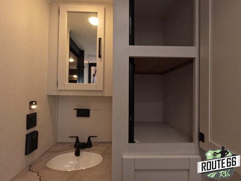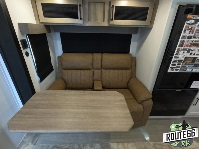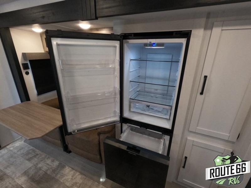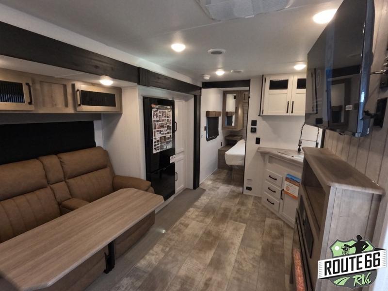 This travel trailer is inviting and spacious thanks to the large slide out, which houses the sofa, 12V refrigerator and second pantry! There is a fireplace across from the sofa for added comfort, and the full rear bath will be easy to get to. A full kitchen inside includes a stainless steel oven and range plus a stainless steel microwave to cook meals, and you can choose to add the optional micro kitchen with a griddle if you enjoy cooking outdoors! When you're ready to call it a night, the queen bed in the front private bedroom will be calling your name!