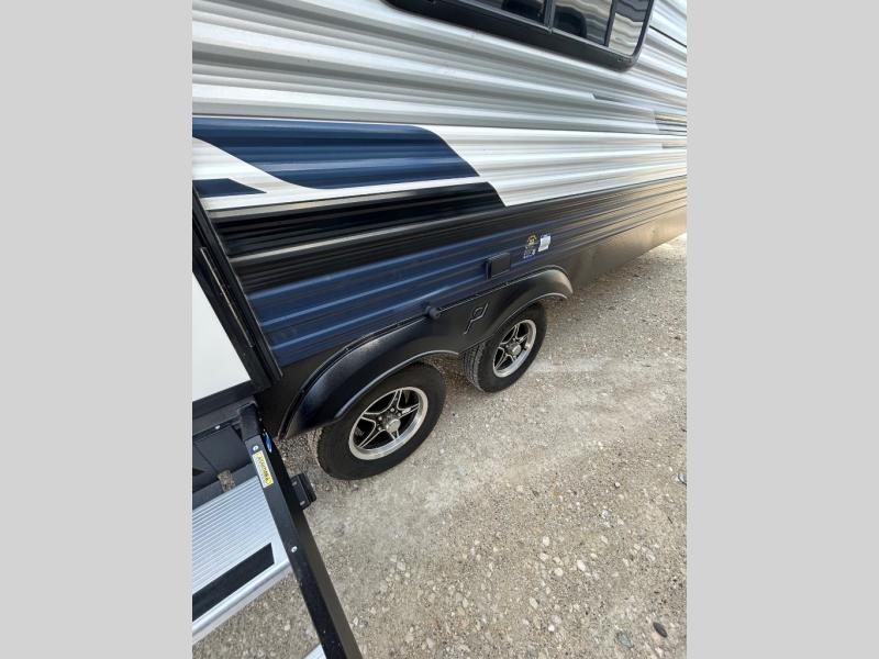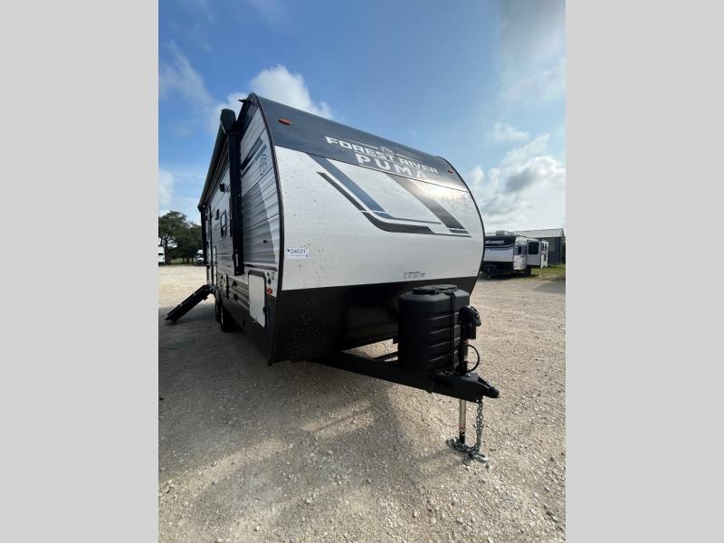 If you're looking for family-fun adventures then you need one of these Palomino Puma fifth wheels or travel trailers! They are built rugged, easy to tow, and jam packed with features. The Darco wrapped underbelly will protect your units vitals the AlphaPly roofing membrane covers it. They also have new aluminum wheels and a powder coated steel I-beam frame. Inside, the Congoleum linoleum will be easy to keep clean, and the night roller shades will provide privacy when it's time to turn in. You'll also enjoy an electric awning with an LED light strip plus an AM/FM/Bluetooth stereo and two outside speakers to keep the party going!