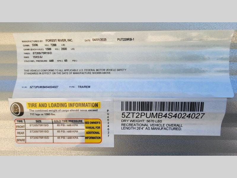 New 2025 Palomino Puma 229RB Travel Trailer