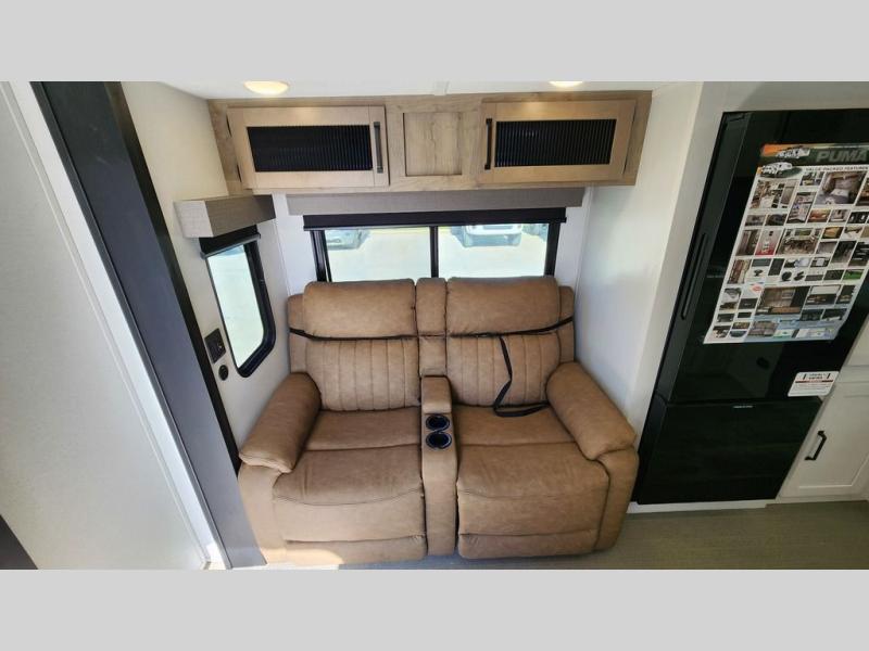 If you're looking for family-fun adventures then you need one of these Palomino Puma fifth wheels or travel trailers! They are built rugged, easy to tow, and jam packed with features. The Darco wrapped underbelly will protect your units vitals the AlphaPly roofing membrane covers it. They also have new aluminum wheels and a powder coated steel I-beam frame. Inside, the Congoleum linoleum will be easy to keep clean, and the night roller shades will provide privacy when it's time to turn in. You'll also enjoy an electric awning with an LED light strip plus an AM/FM/Bluetooth stereo and two outside speakers to keep the party going!