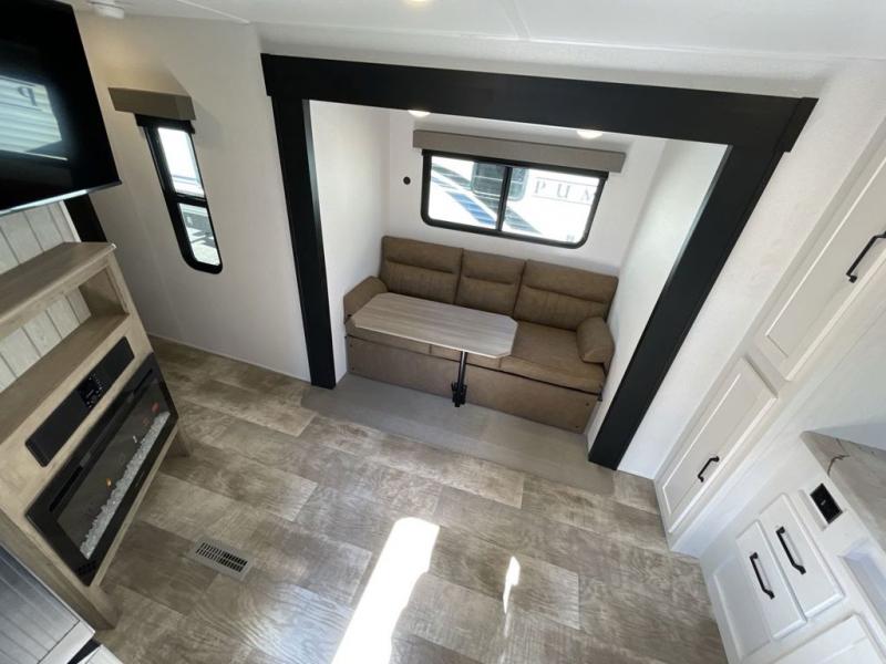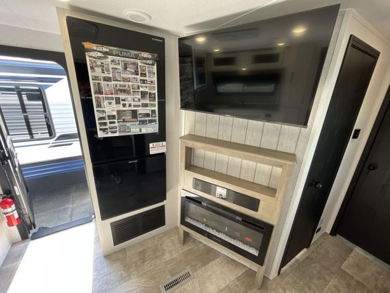 If you're looking for family-fun adventures then you need one of these Palomino Puma fifth wheels or travel trailers! They are built rugged, easy to tow, and jam packed with features. The Darco wrapped underbelly will protect your units vitals and the AlphaPly roofing membrane covers it. They also have new aluminum wheels and a powder coated steel I-beam frame. Inside, the Congoleum linoleum will be easy to keep clean, and the night roller shades will provide privacy when it's time to turn in. You'll also enjoy an electric awning with an LED light strip plus an AM/FM/Bluetooth stereo and two outside speakers to keep the party going!