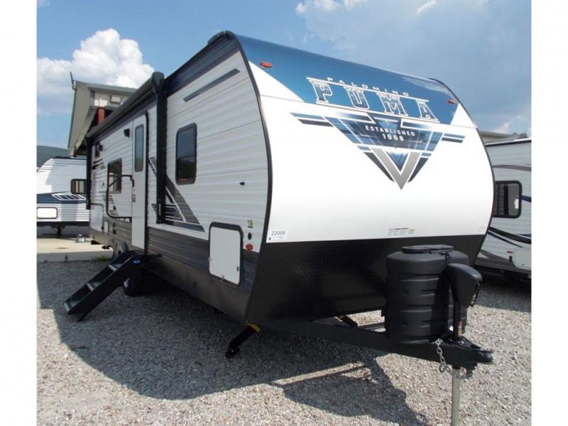 If you're looking for family-fun adventures then you need one of these Palomino Puma fifth wheels or travel trailers! They are built rugged, easy to tow, and jam packed with features. The Darco wrapped underbelly will protect your units vitals through every season and the AlphaPly roofing membrane covers it. They also have new aluminum wheels and a powder coated steel I-beam frame. Inside, the Congoleum linoleum will be easy to keep clean, and the night roller shades will provide privacy when it's time to turn in. You'll also enjoy an electric awning with an LED light strip plus an AM/FM/Bluetooth stereo and two outside speakers to keep the party going!