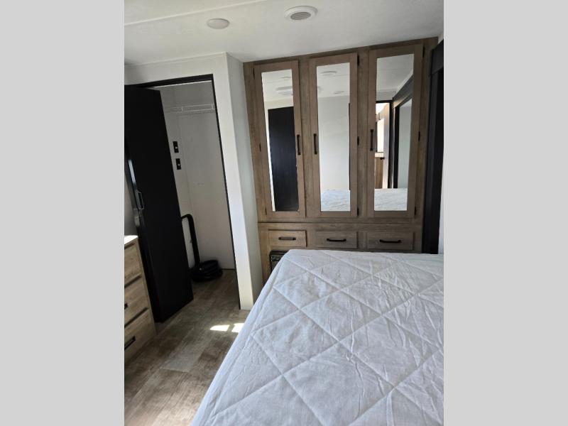 If you're looking for family-fun adventure then you need one of these Palomino Puma fifth wheels or travel trailers! They are built rugged, easy to tow, and jam packed with features. The Darco wrapped underbelly will protect your units vitals through every season and the AlphaPly roofing membrane covers it. They also have super lube axles and a powder coated frame. Their luxurious interiors feature a spice rack and built-in knife rack in the kitchen, USB charging ports to keep your electronics at 100%, and high density foam mattresses for a good night's rest. The required Advantage package comes with night roller shades for privacy at night, two outside speakers to crank up the tunes while you play cornhole, and an outside shower to keep the dirt outside where it belongs, plus so much more!