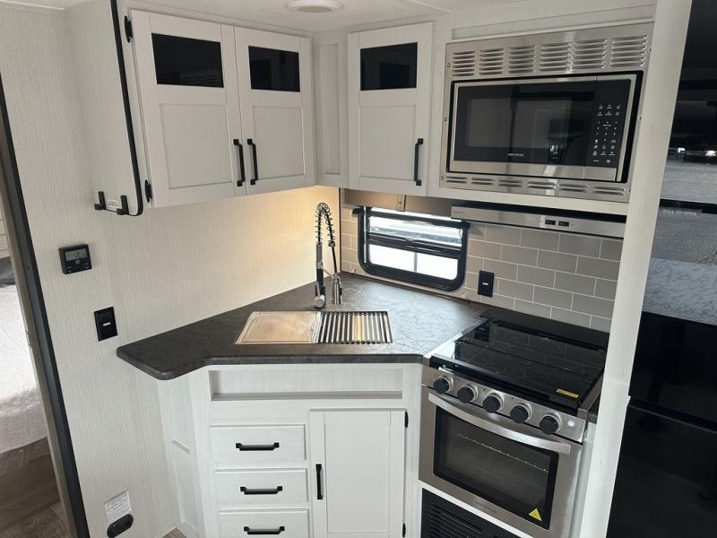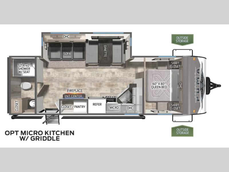 If you're looking for family-fun adventure then you need one of these Palomino Puma fifth wheels or travel trailers! They are built rugged, easy to tow, and jam packed with features. The Darco wrapped underbelly will protect your units vitals through every season and the AlphaPly roofing membrane covers it. They also have super lube axles and a powder coated frame. Their luxurious interiors feature a spice rack and built-in knife rack in the kitchen, USB charging ports to keep your electronics at 100%, and high density foam mattresses for a good night's rest. The required Advantage package comes with night roller shades for privacy at night, two outside speakers to crank up the tunes while you play cornhole, and an outside shower to keep the dirt outside where it belongs, plus so much more!