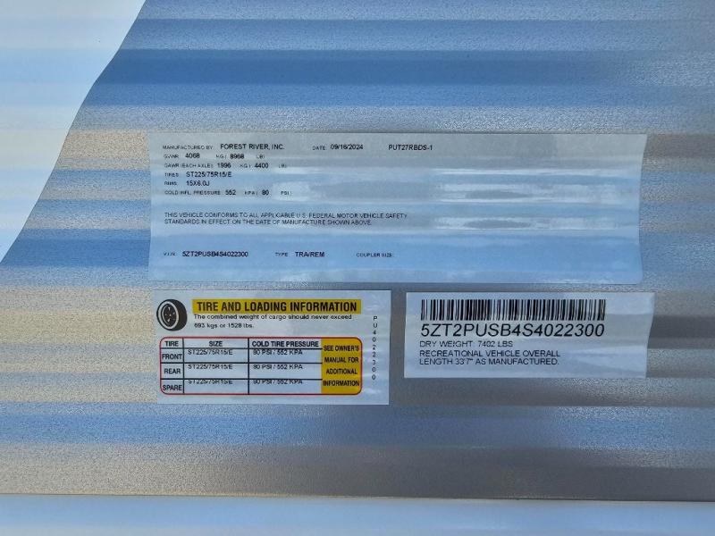 NEW 2025 Palomino Puma travel trailer 27RBDS