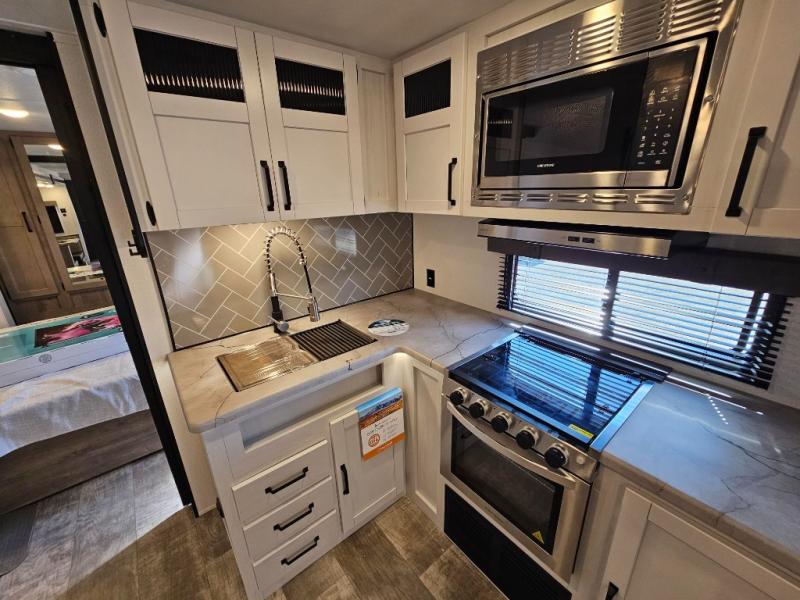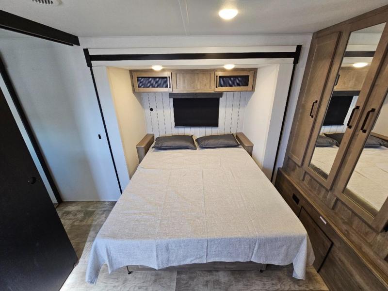 If you're looking for family-fun adventure then you need one of these Palomino Puma fifth wheels or travel trailers! They are built rugged, easy to tow, and jam packed with features. The Darco wrapped underbelly will protect your units vitals through every season and the AlphaPly roofing membrane covers it. They also have super lube axles and a powder coated frame. Their luxurious interiors feature a spice rack and built-in knife rack in the kitchen, USB charging ports to keep your electronics at 100%, and high density foam mattresses for a good night's rest. The required Advantage package comes with night roller shades for privacy at night, two outside speakers to crank up the tunes while you play cornhole, and an outside shower to keep the dirt outside where it belongs, plus so much more!