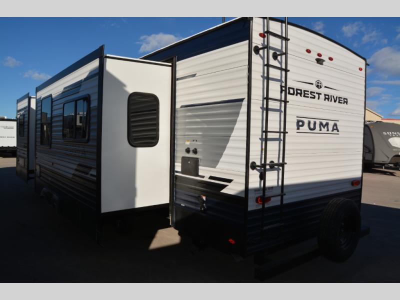 If you're looking for family-fun adventures then you need one of these Palomino Puma fifth wheels or travel trailers! They are built rugged, easy to tow, and jam packed with features. The Darco wrapped underbelly will protect your units vitals through every season and the AlphaPly roofing membrane covers it. They also have new aluminum wheels and a powder coated steel I-beam frame. Inside, the Congoleum linoleum will be easy to keep clean, and the night roller shades will provide privacy when it's time to turn in. You'll also enjoy an electric awning with an LED light strip plus an AM/FM/Bluetooth stereo and two outside speakers to keep the party going!