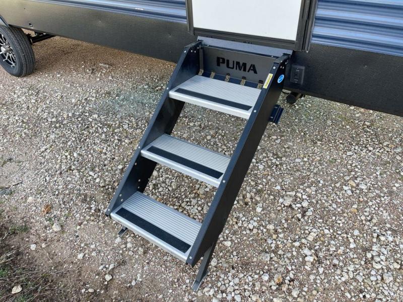 If you're looking for family-fun adventures then you need one of these Palomino Puma fifth wheels or travel trailers! They are built rugged, easy to tow, and jam packed with features. The Darco wrapped underbelly will protect your units vitals through every season and the AlphaPly roofing membrane covers it. They also have new aluminum wheels and a powder coated steel I-beam frame. Inside, the Congoleum linoleum will be easy to keep clean, and the night roller shades will provide privacy when it's time to turn in. You'll also enjoy an electric awning with an LED light strip plus an AM/FM/Bluetooth stereo and two outside speakers to keep the party going!