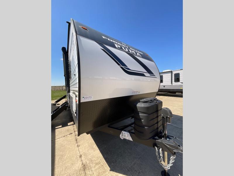 If you're looking for family-fun adventures then you need one of these Palomino Puma fifth wheels or travel trailers! They are built rugged, easy to tow, and jam packed with features. The Darco wrapped underbelly will protect your units vitals through every season and the AlphaPly roofing membrane covers it. They also have new aluminum wheels and a powder coated steel I-beam frame. Inside, the Congoleum linoleum will be easy to keep clean, and the night roller shades will provide privacy when it's time to turn in. You'll also enjoy an electric awning with an LED light strip plus an AM/FM/Bluetooth stereo and two outside speakers to keep the party going!
