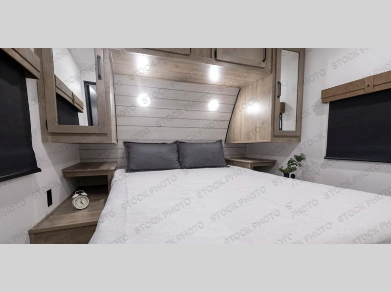 With two full bedrooms, everyone will have their own private retreat in this travel trailer! The front private bedroom has a queen bed with shirt closets and nightstands on either side of it, and the rear private bedroom has a queen bed with a shirt closet. The spacious full bathroom has a 34" x 34" radius shower for everyone to freshen up and one of the entrances leads directly outside so you can get back to having fun fast. Prepare your best home cooked meals indoors with the walk-in pantry, stainless steel oven and range, and the 12V refrigerator. Plus, there is a U-shaped dinette to enjoy your meals and even transform into an extra sleeping space!
