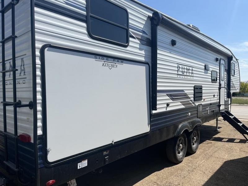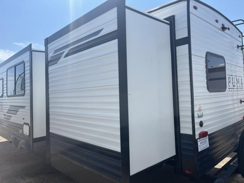 If you're looking for family-fun adventures then you need one of these Palomino Puma fifth wheels or travel trailers! They are built rugged, easy to tow, and jam packed with features. The Darco wrapped underbelly will protect your units vitals through every season and the AlphaPly roofing membrane covers it. They also have new aluminum wheels and a powder coated steel I-beam frame. Inside, the Congoleum linoleum will be easy to keep clean, and the night roller shades will provide privacy when it's time to turn in. You'll also enjoy an electric awning with an LED light strip plus an AM/FM/Bluetooth stereo and two outside speakers to keep the party going!