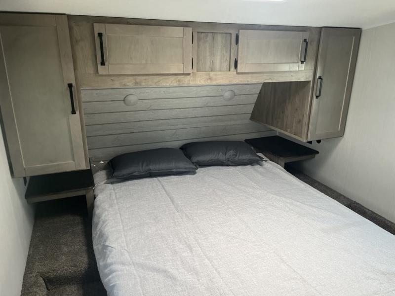 If you're looking for family-fun adventure then you need one of these Palomino Puma fifth wheels or travel trailers! They are built rugged, easy to tow, and jam packed with features. The Darco wrapped underbelly will protect your units vitals through every season and the AlphaPly roofing membrane covers it. They also have super lube axles and a powder coated frame. Their luxurious interiors feature a spice rack and built-in knife rack in the kitchen, USB charging ports to keep your electronics at 100%, and high density foam mattresses for a good night's rest. The required Advantage package comes with night roller shades for privacy at night, two outside speakers to crank up the tunes while you play cornhole, and an outside shower to keep the dirt outside where it belongs, plus so much more!