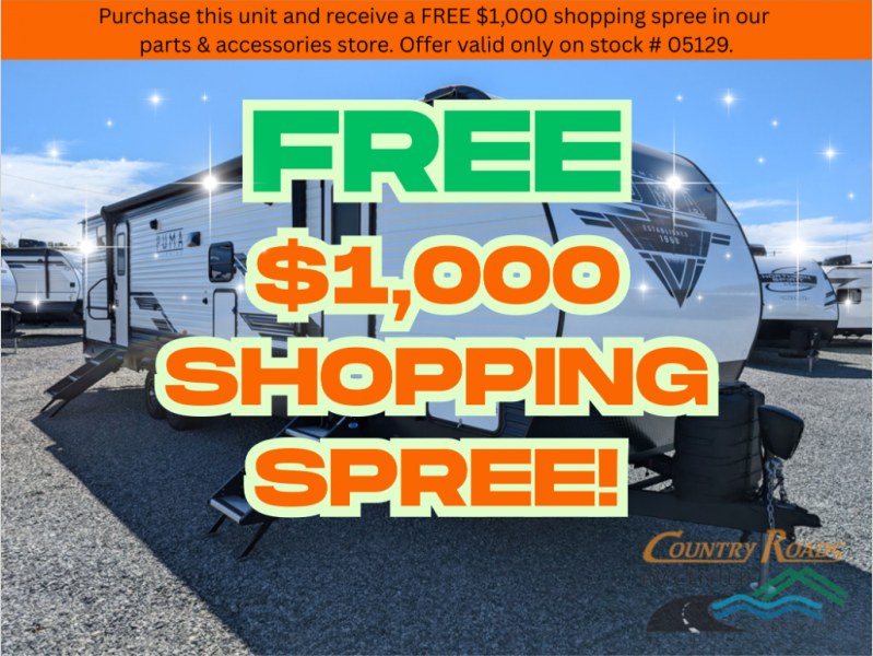 If you're looking for family-fun adventures then you need one of these Palomino Puma fifth wheels or travel trailers! They are built rugged, easy to tow, and jam packed with features. The Darco wrapped underbelly will protect your units vitals through every season and the AlphaPly roofing membrane covers it. They also have super lube axles and a powder coated frame. Their luxurious interiors feature a spice rack and built-in knife rack in the kitchen, USB charging ports to keep your electronics at 100%, and high density foam mattresses for a good night's rest. The required Advantage package comes with night roller shades for privacy, two outside speakers to crank up the tunes while you play cornhole, and an outside shower to keep the dirt outside where it belongs, plus so much more!