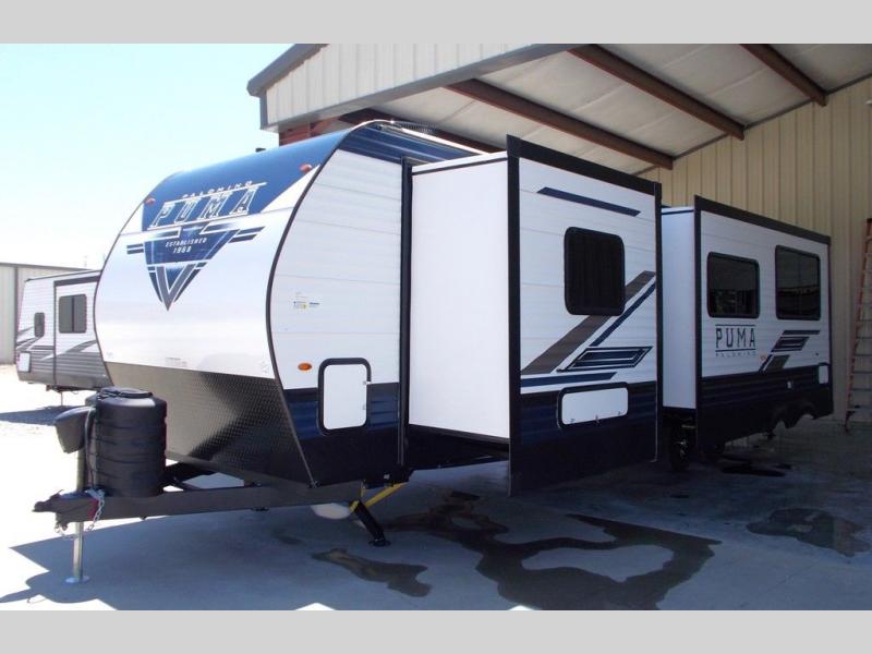 If you're looking for family-fun adventures then you need one of these Palomino Puma fifth wheels or travel trailers! They are built rugged, easy to tow, and jam packed with features. The Darco wrapped underbelly will protect your units vitals through every season and the AlphaPly roofing membrane covers it. They also have new aluminum wheels and a powder coated steel I-beam frame. Inside, the Congoleum linoleum will be easy to keep clean, and the night roller shades will provide privacy when it's time to turn in. You'll also enjoy an electric awning with an LED light strip plus an AM/FM/Bluetooth stereo and two outside speakers to keep the party going!