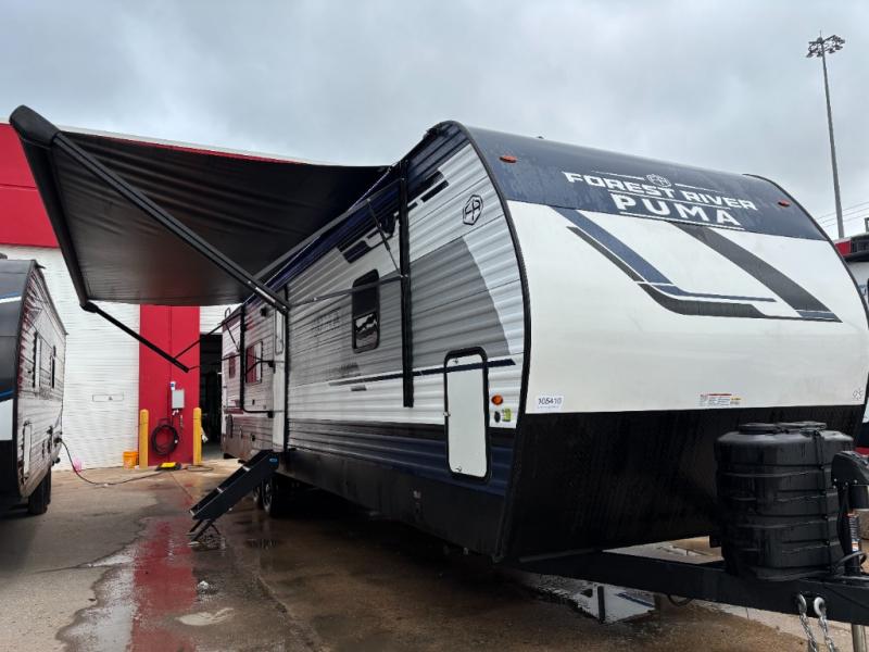 If you're looking for family-fun adventures then you need one of these Palomino Puma fifth wheels or travel trailers! They are built rugged, easy to tow, and jam packed with features. The Darco wrapped underbelly will protect your units vitals through every season and the AlphaPly roofing membrane covers it. They also have new aluminum wheels and a powder coated steel I-beam frame. Inside, the Congoleum linoleum will be easy to keep clean, and the night roller shades will provide privacy when it's time to turn in. You'll also enjoy an electric awning with an LED light strip plus an AM/FM/Bluetooth stereo and two outside speakers to keep the party going!