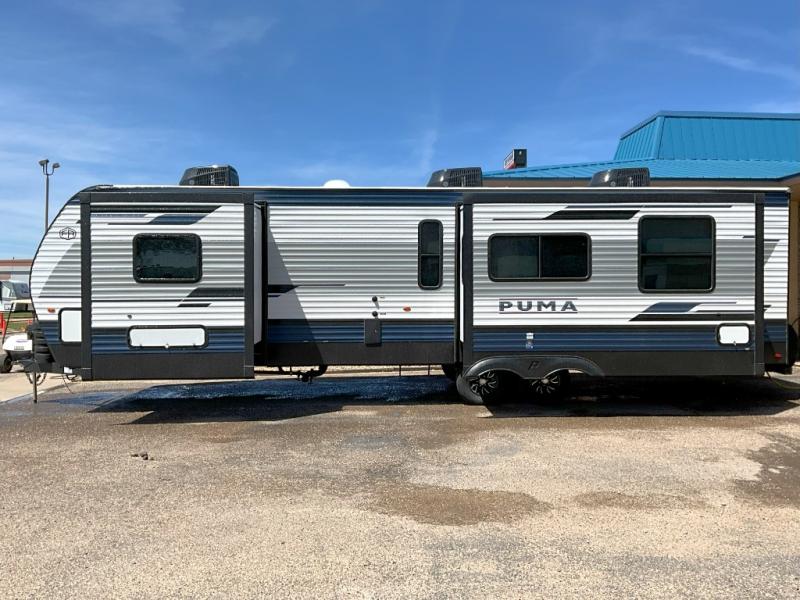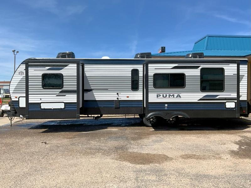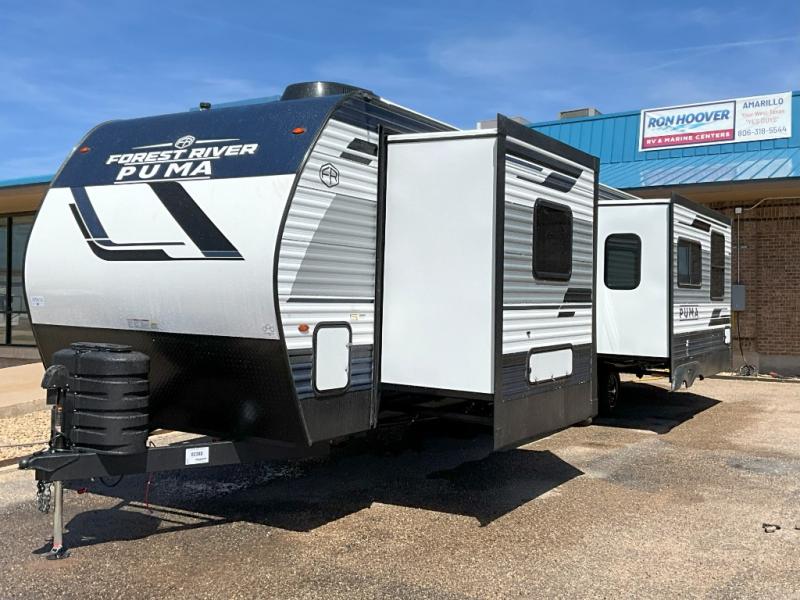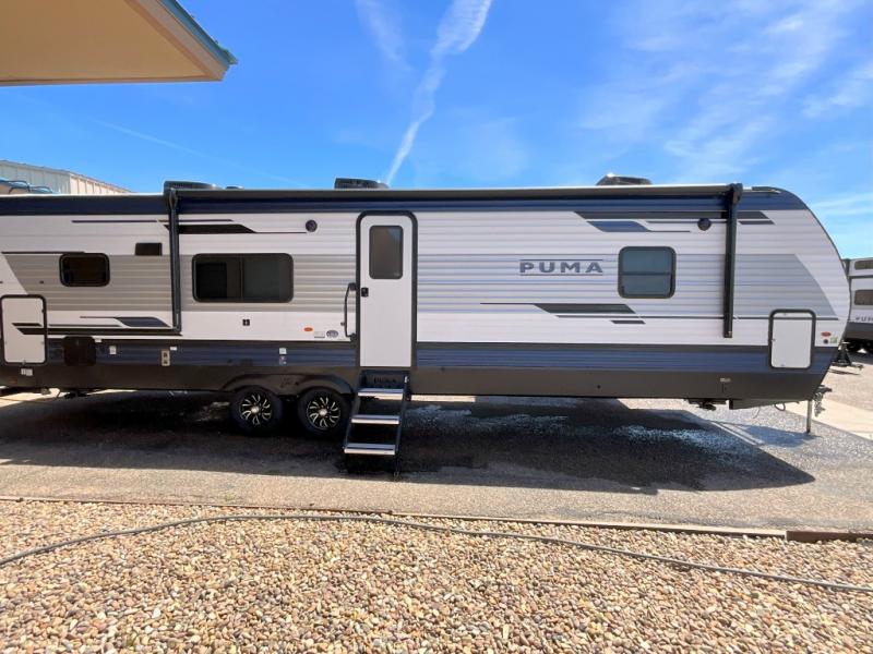 If you're looking for family-fun adventures then you need one of these Palomino Puma fifth wheels or travel trailers! They are built rugged, easy to tow, and jam packed with features. The Darco wrapped underbelly will protect your units vitals through every season and the AlphaPly roofing membrane covers it. They also have new aluminum wheels and a powder coated steel I-beam frame. Inside, the Congoleum linoleum will be easy to keep clean, and the night roller shades will provide privacy when it's time to turn in. You'll also enjoy an electric awning with an LED light strip plus an AM/FM/Bluetooth stereo and two outside speakers to keep the party going!