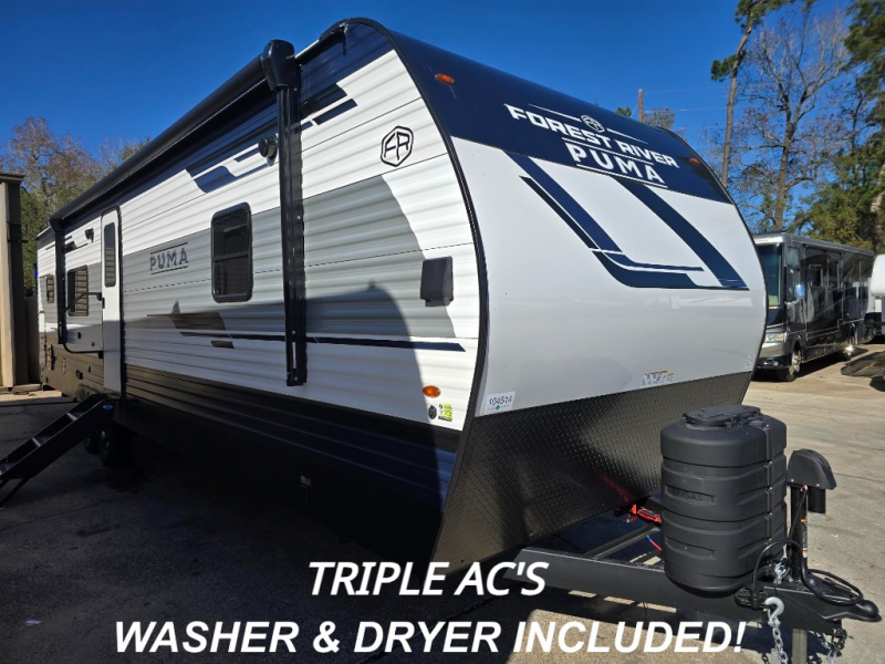 If you're looking for family-fun adventures then you need one of these Palomino Puma fifth wheels or travel trailers! They are built rugged, easy to tow, and jam packed with features. The Darco wrapped underbelly will protect your units vitals through every season and the AlphaPly roofing membrane covers it. They also have new aluminum wheels and a powder coated steel I-beam frame. Inside, the Congoleum linoleum will be easy to keep clean, and the night roller shades will provide privacy when it's time to turn in. You'll also enjoy an electric awning with an LED light strip plus an AM/FM/Bluetooth stereo and two outside speakers to keep the party going!